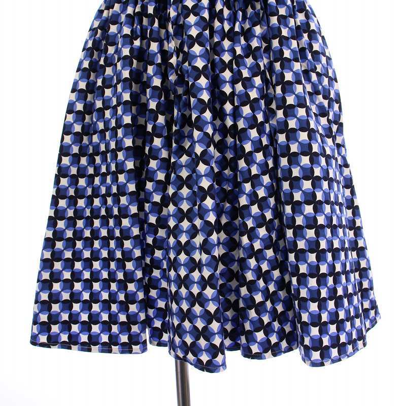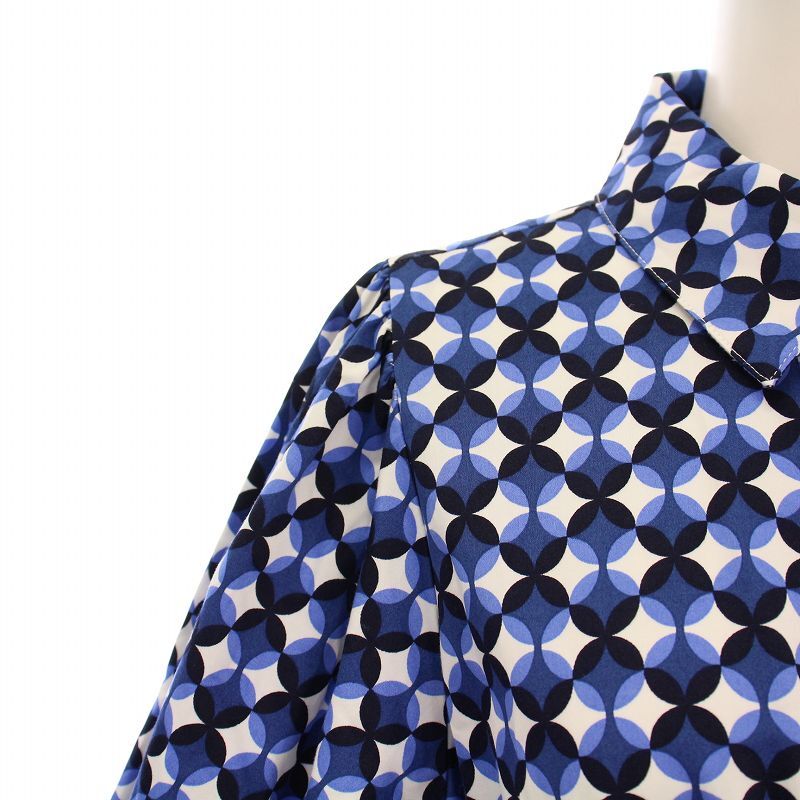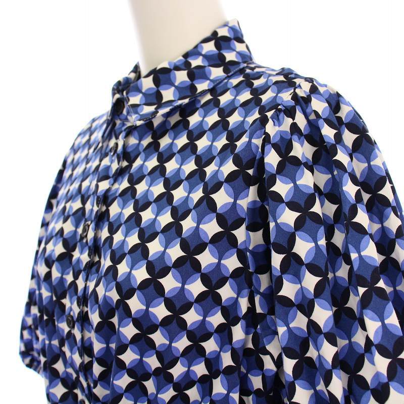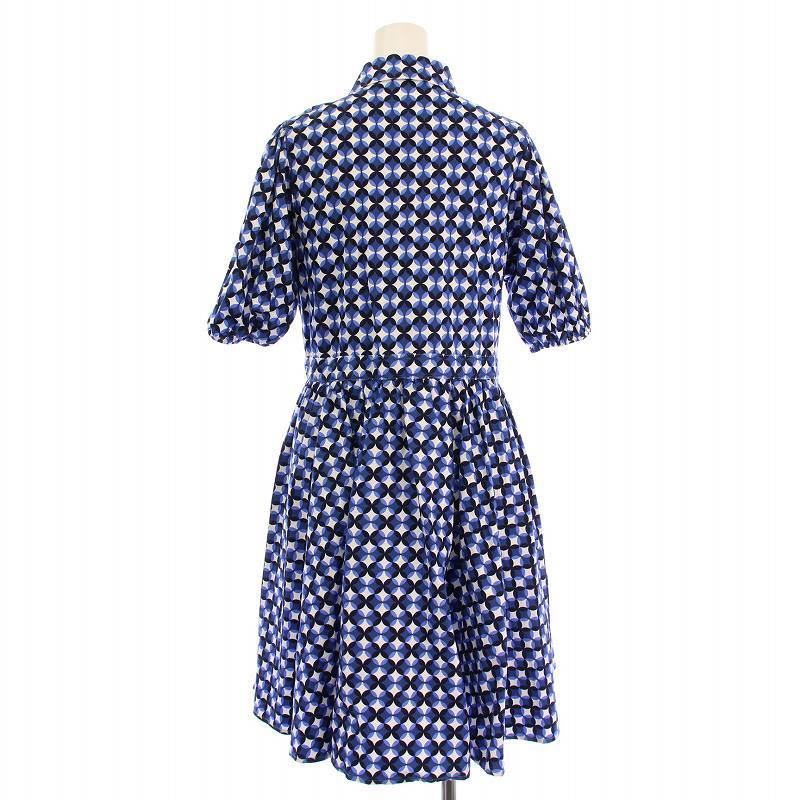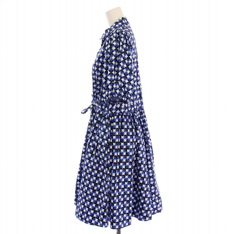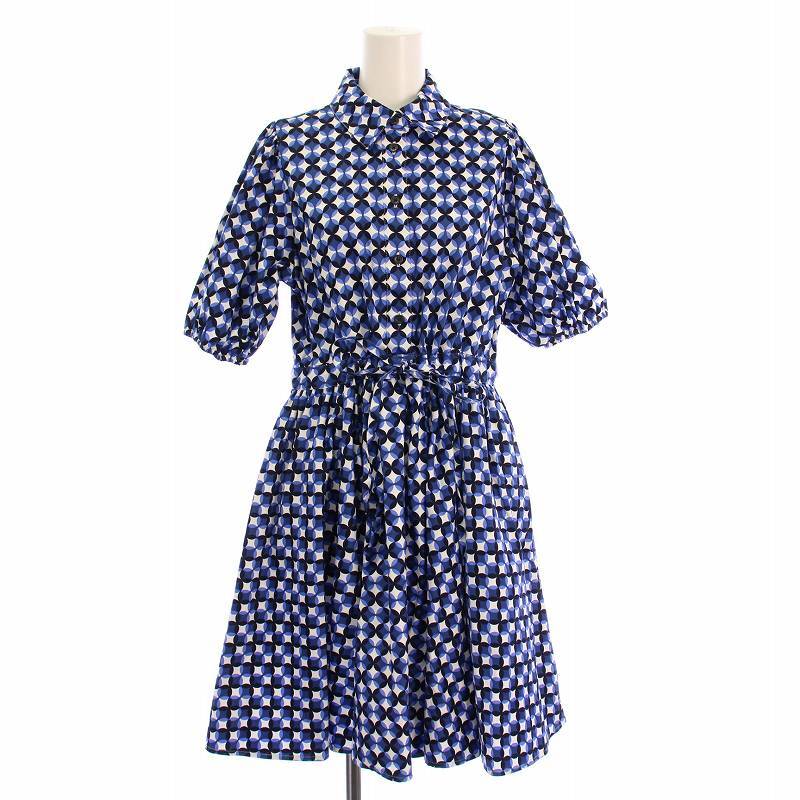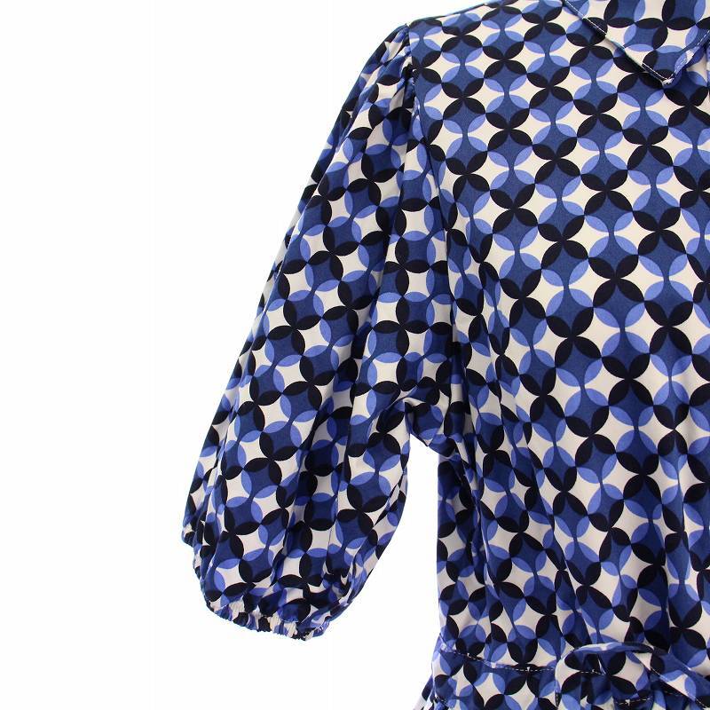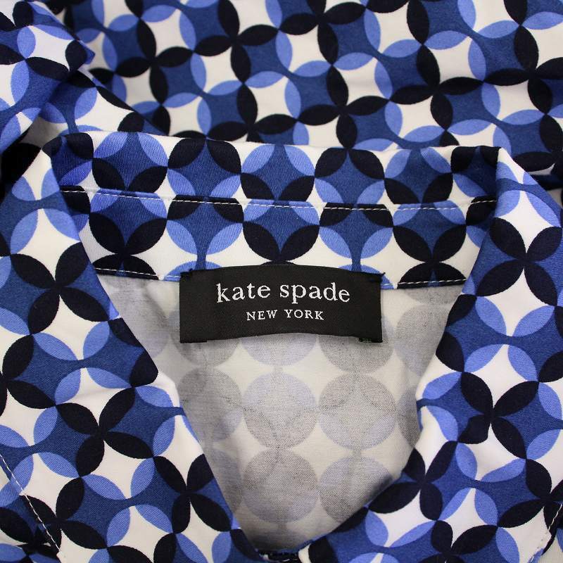 ケイトスペード KATE SPADE パティオタイルシャツドレス フレアワンピース ひざ丈 五分袖 レギュラーカラー 総柄 S 青 ブルー KB063