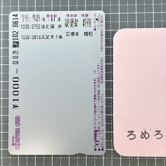 ∞●【使用済カード♯1822】スルッとKANSAIコンパスカード「なんばパークス」南海電気鉄道【鉄道/電車】