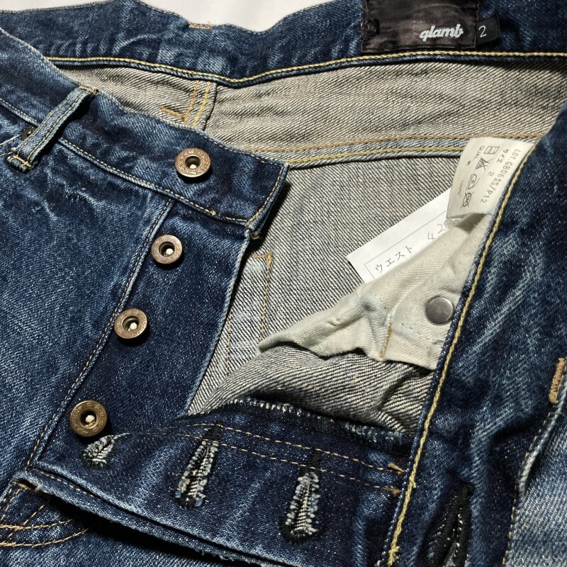 glamb★入手困難 初期★00sアーカイブ★ヴィンテージ デニムパンツ ジーンズ ストレート 絶妙ヒゲ&アタリ 黒 2 グラム Y2K 裏原ストリート