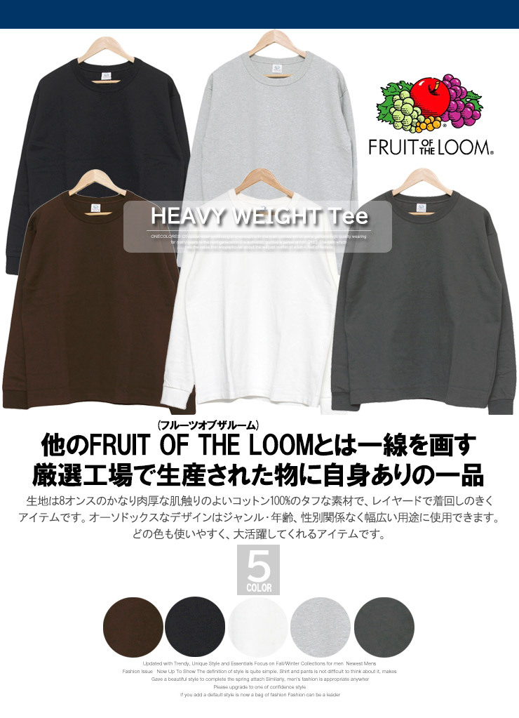 商品名 | 【新品】 M チャコール FRUIT OF THE LOOM(フルーツオブザルーム) 長袖 Tシャツ メンズ ヘビーウェイト 8オンス 厚手 無地 クルーネック カットソー |