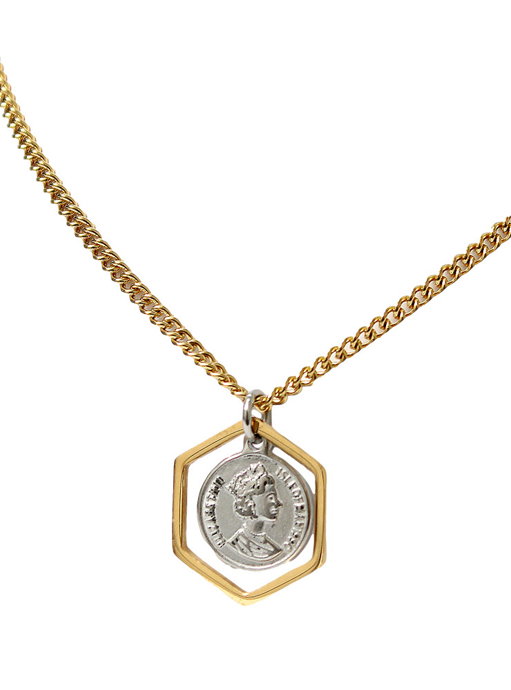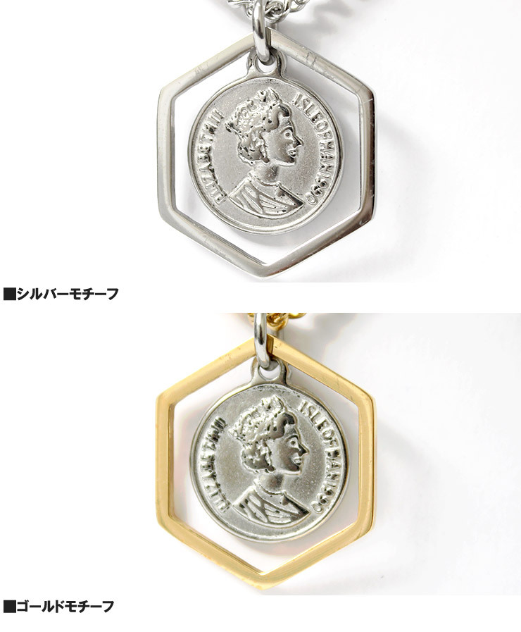 商品名 | 【新品】 F ゴールド ネックレス メンズ 六角形 コイン モチーフ チェーン レディース ユニセックス |