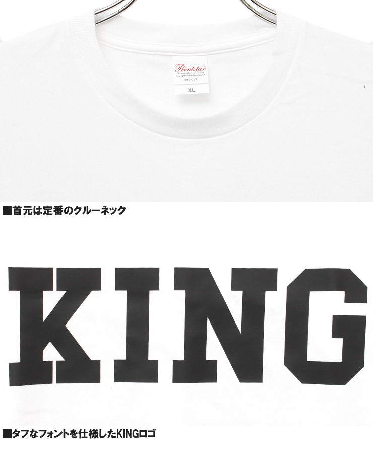 | 商品名 | 【新品】 XXL KING 半袖 Tシャツ メンズ 大きいサイズ ヘビーウェイト KING プリント クルーネック カットソー |