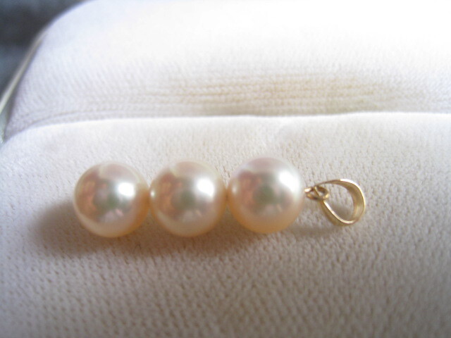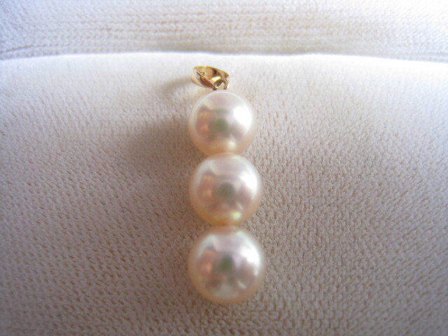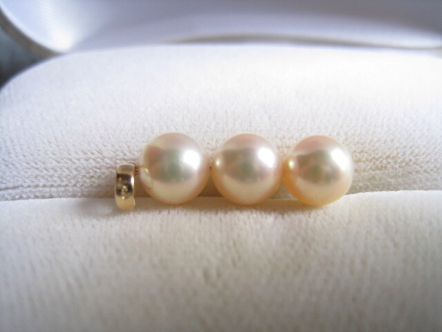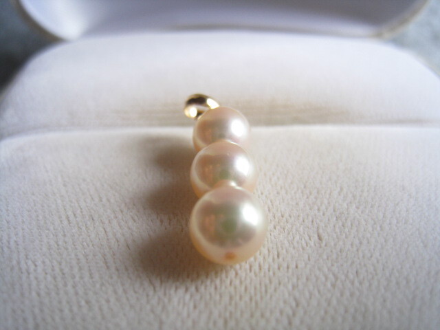 [SAMU]極美!!照り抜群 天然あこや真珠6.5mmX3粒 k18金ペンダント 新品同様!
