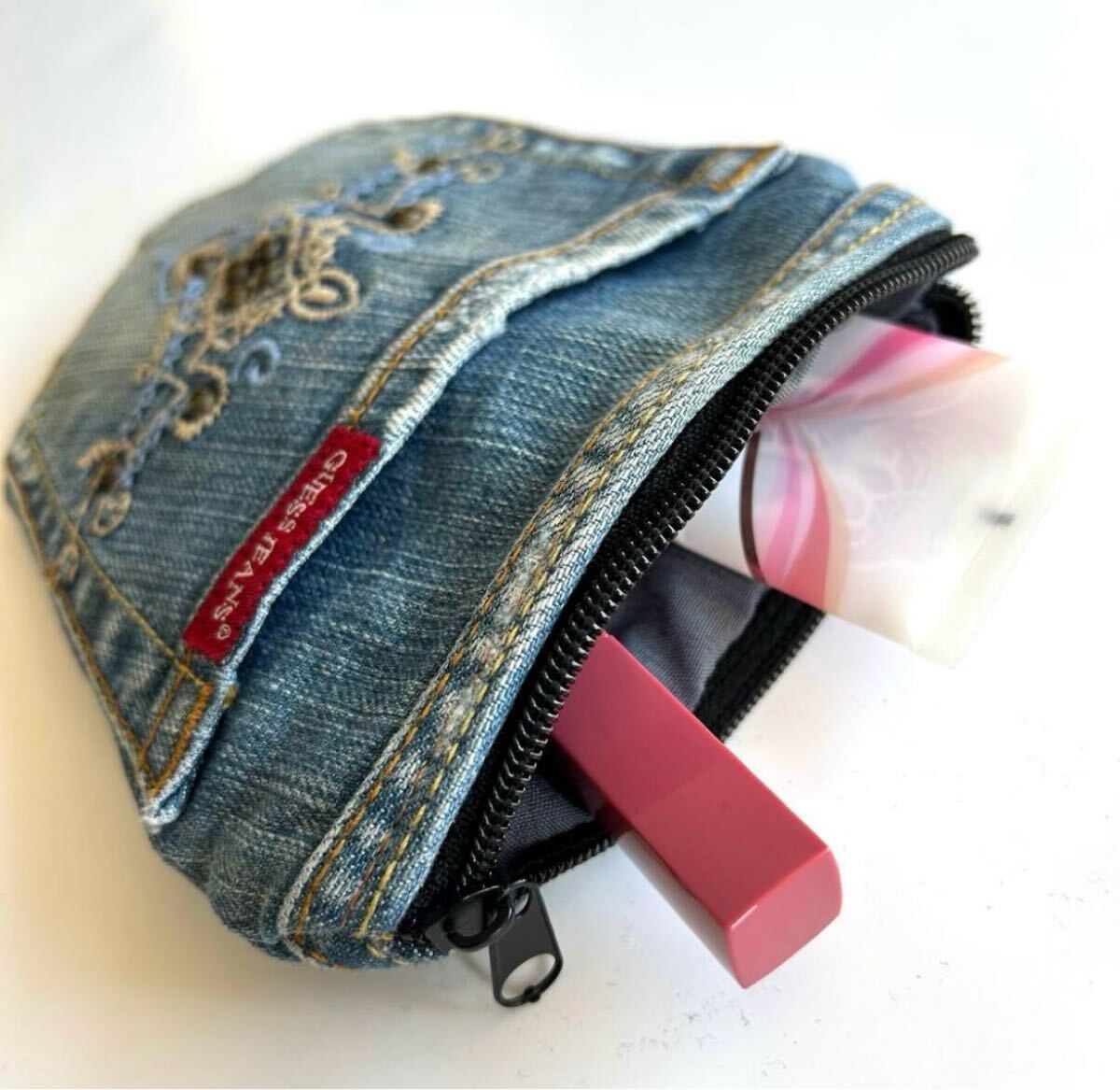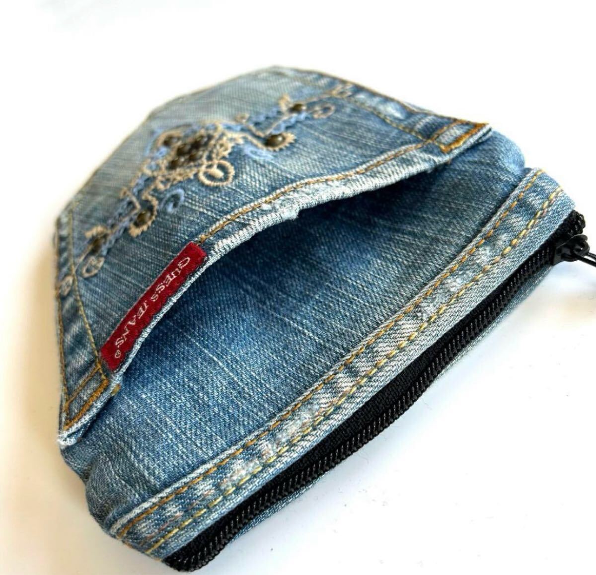 ひとつひとつハンドメイドで作られたリメイクデニムのポーチです。