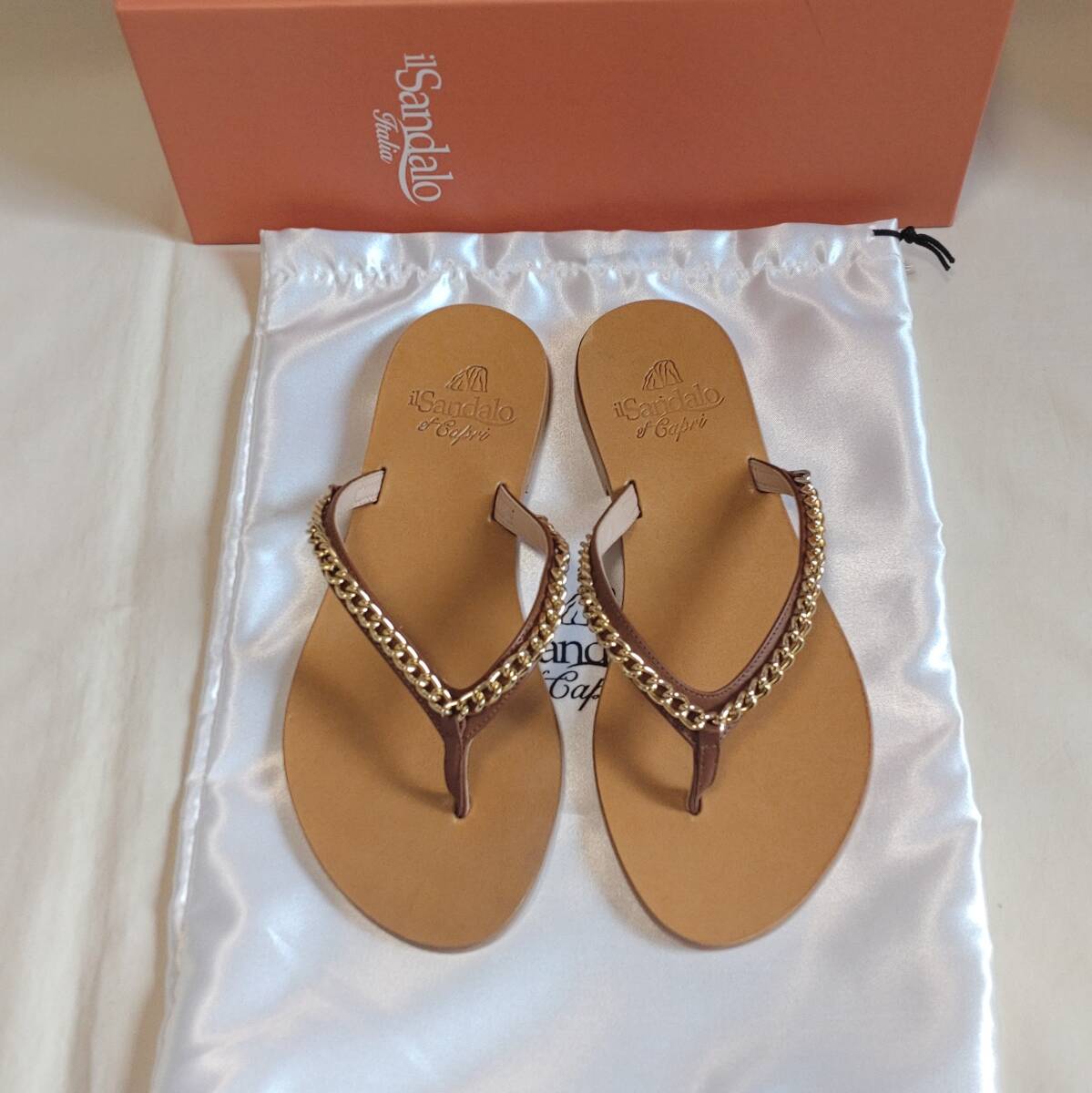 定価38,500円 新品 il Sandalo of Capri イルサンダロオブカプリ ゴールドチェーン トング フラット サンダル 36/23~23.5cm イタリア製
