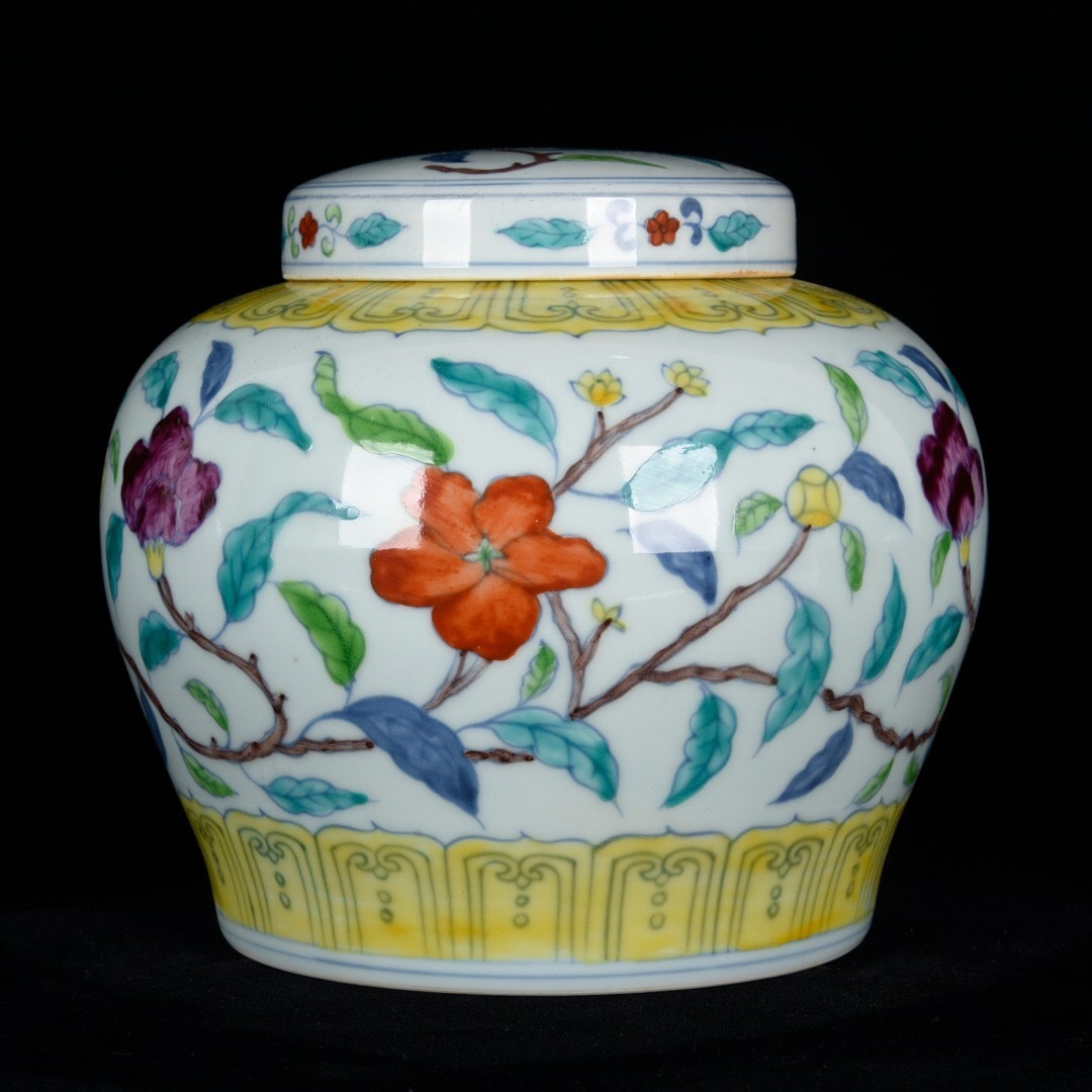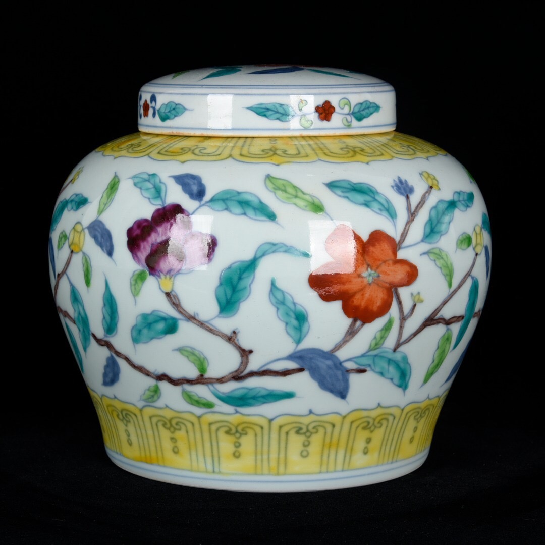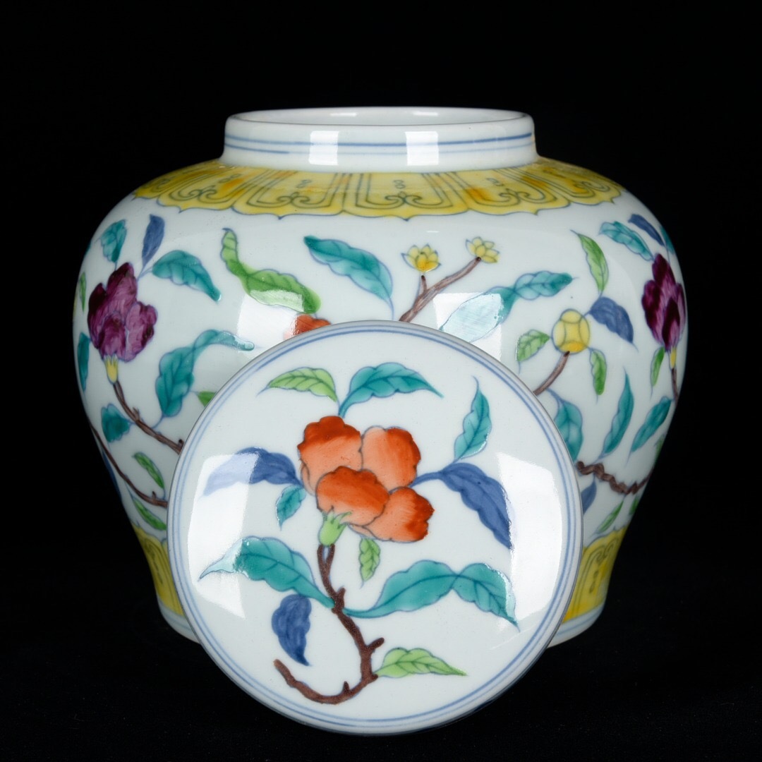| 【蔵友館蔵品・明・成化年製款・古陶瓷品・斗彩・纏枝花紋・天字罐】・希少珍品・置物・賞物・中国時代美術 |