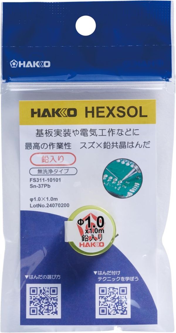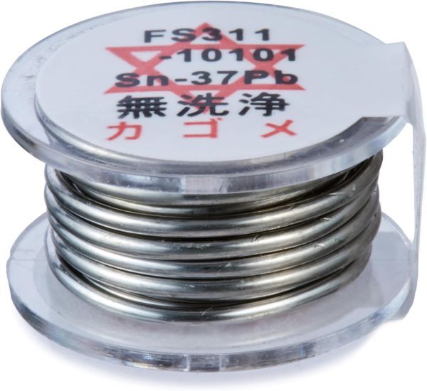 基盤実装や電気工作のはんだ付けの際にご利用いただく鉛入り共晶はんだです。 作業性と信頼性にすぐれた共晶はんだで融点も低いため、初めてはんだ付けをする方にもおすすめです。 使い切りやすい1m巻きなので、作業に合わせたはんだを使い分けしやすいです。 はんだ付けしやすく腐食性が低いフラックスなので、はんだ付け後の洗浄が必要ありません。