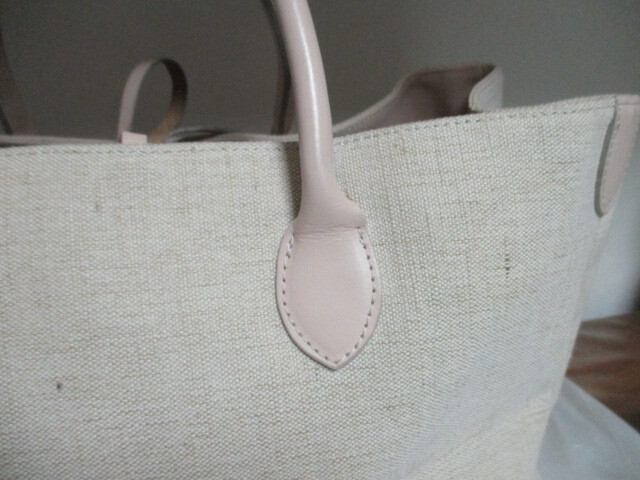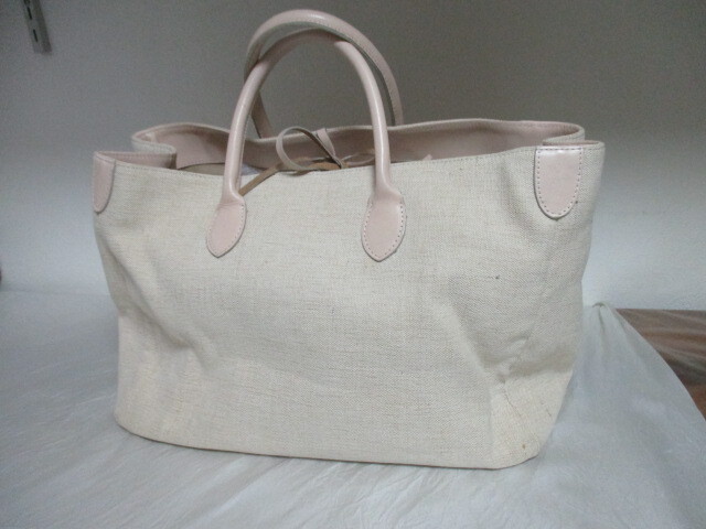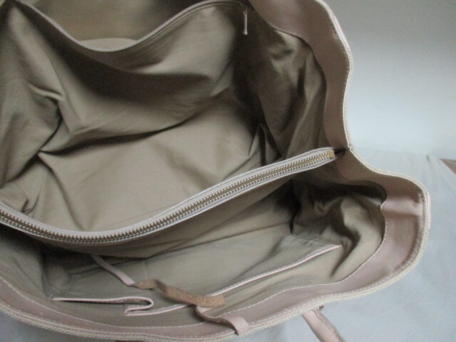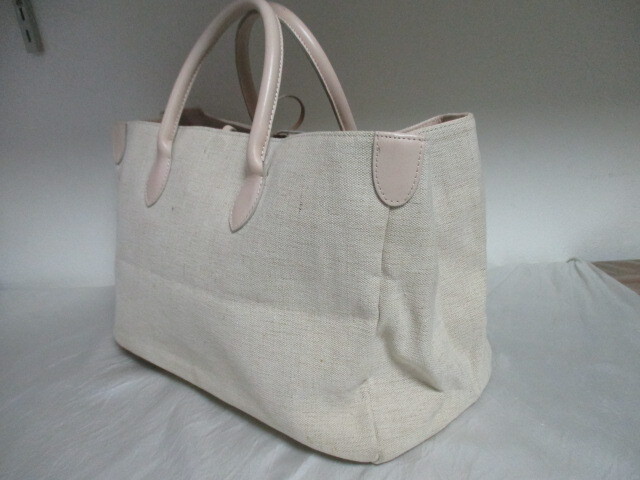 | 商品紹介 | ベージュのキャンバス地に薄いベージュの革(もしくは合皮)の持ち手、内側の縁取りの組み合わせがオシャレです。 *革の部分は見た目は革ですが合皮かもしれません。気にならない方の入札を希望します。 A4が入るぐらいのサイズです 肩掛けはできません。 内側は 濃いベージュのコットン系 素材です 入り口はチャック等はありませんが、革ひもで縛って留めます。 外ポケット なし 内ポケット 中央に仕切りがあり、仕切り部分にB5サイズのポケットあり(チャック式) 手帳サイズ1(チャック式) 長財布サイズ1 スマートフォンサイズ1(いずれもチャック等なし) *規定サイズに合わせるため折りたたんでの発送となります。 |