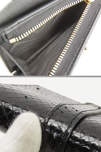 商品状態 | ロック金具に小キズ、表面パイソンレザーに若干のめくれがございますが、未使用でとても綺麗なお品物になります。 |