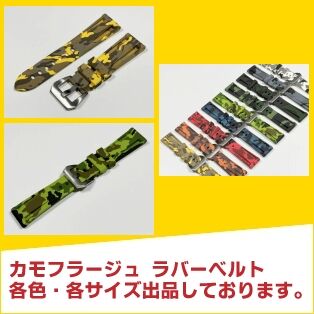 ラグ幅22mm 腕時計ラバーベルト カモフラージュ ライムグリーン 迷彩 腕時計ベルト 時計用バンド パネライ対応 22mmモデルにも取付可 pan