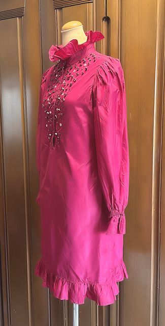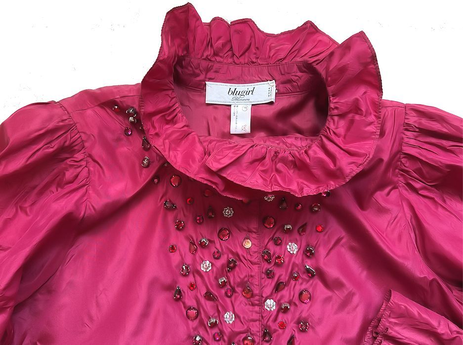 値下★blugirl ブルーガール・ブルマリン・イタリア製★ラインストーン・シルク・フリル・ドレス・ワンピース・レッド・フリーサイズ★美品