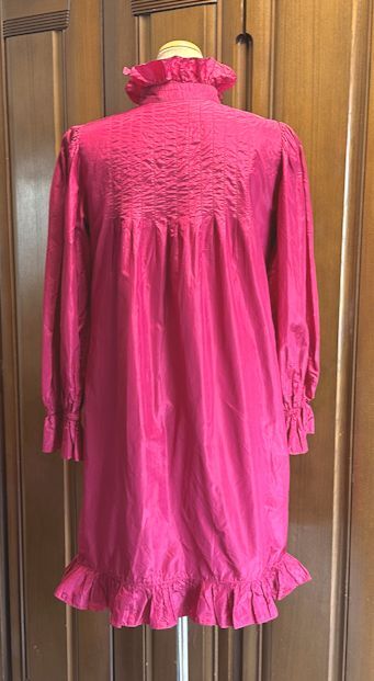 SIZE:実寸(約)肩幅40、バスト92、ウエスト98、ヒップ102、丈90、袖丈58cm/化繊混シルク系素材