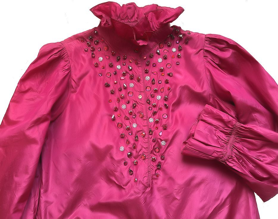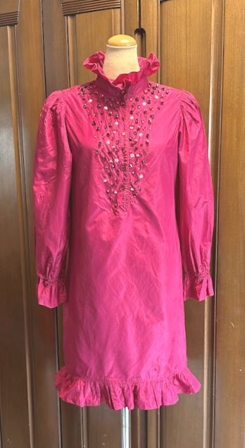 ◎シルキーな光沢素材にラインストーンを散りばめた、ブルーガールのとっても素敵なドレスです。緩やかなAライン・フォルムにパフスリーブ、襟、袖口、裾のフリルも華やかです。お手持ちのベルトや幅広のサテンやベルベットのリボンなどを合わせて、ウエストマークをしてもいいと思います。大切にしておりましたが、赤いドレスが好きで増えてしまい、収納の関係で迷った末の出品です。いかがでしょう★