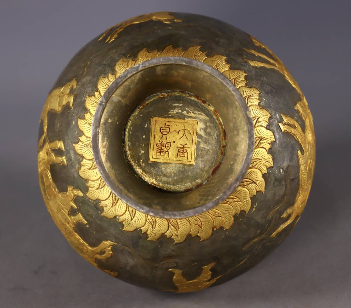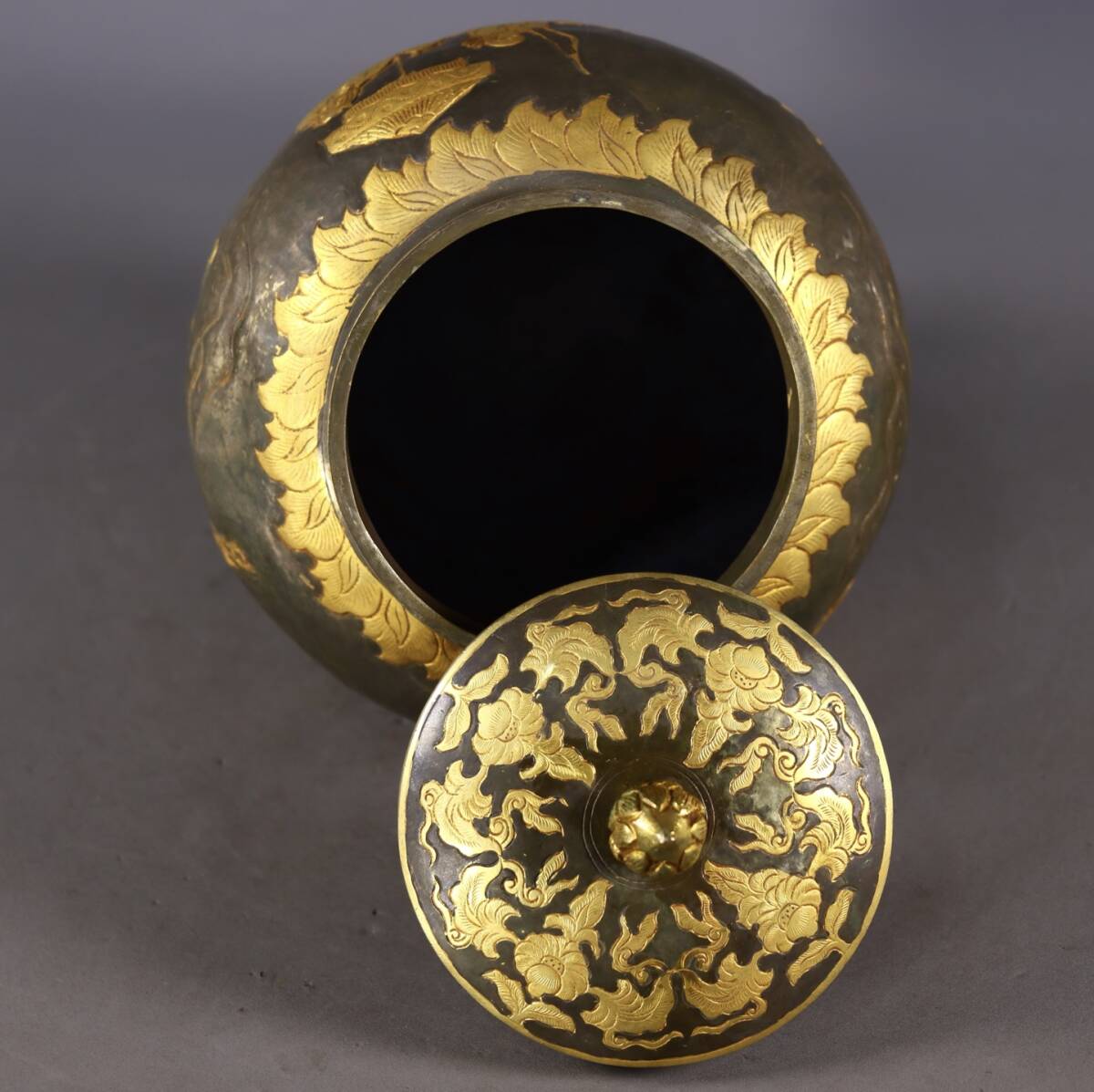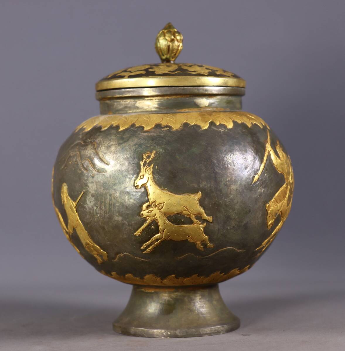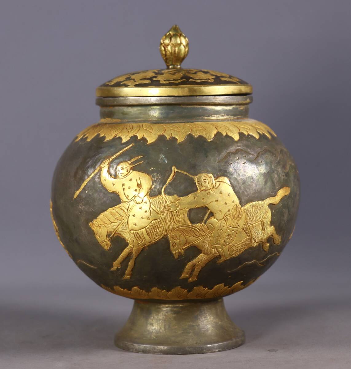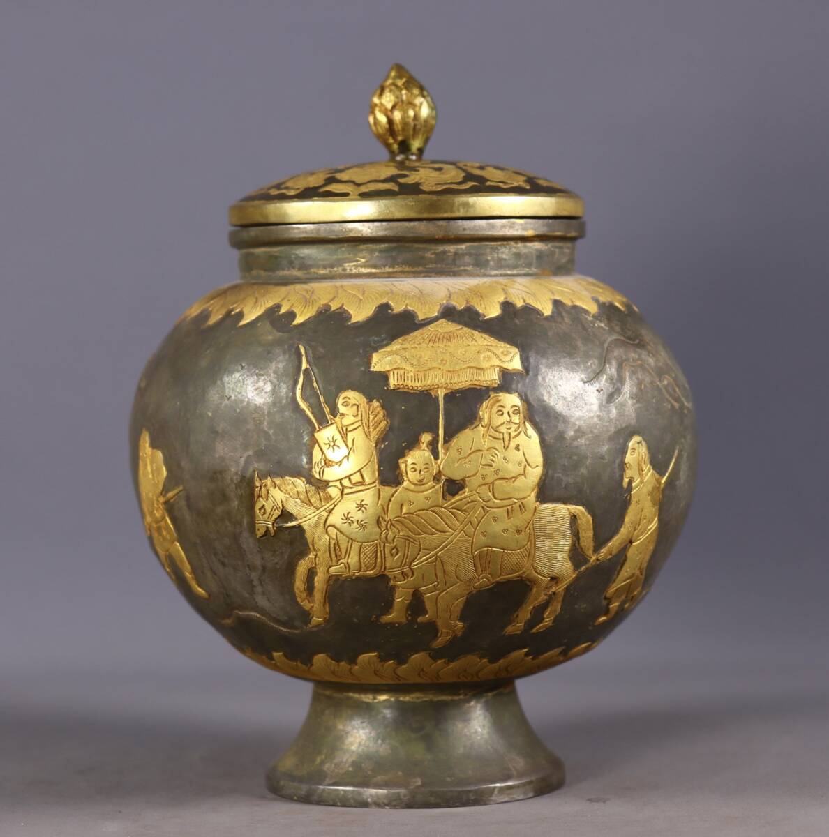 唐物 遼代時期 局部塗金 高浮彫 狩獵圖 罐 中国美術品 時代物 中国古玩 骨董品 D65