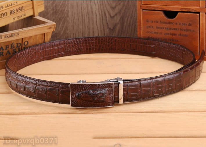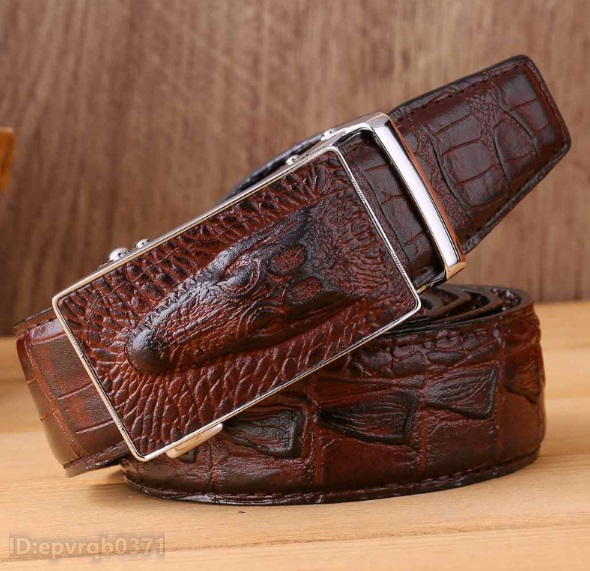 レザーベルト※新入荷 上質 本革牛革 ワニ柄 オートロック式 ゴルフベルト メンズベルト 紳士 革ベルト 長さ調整可能 /茶色