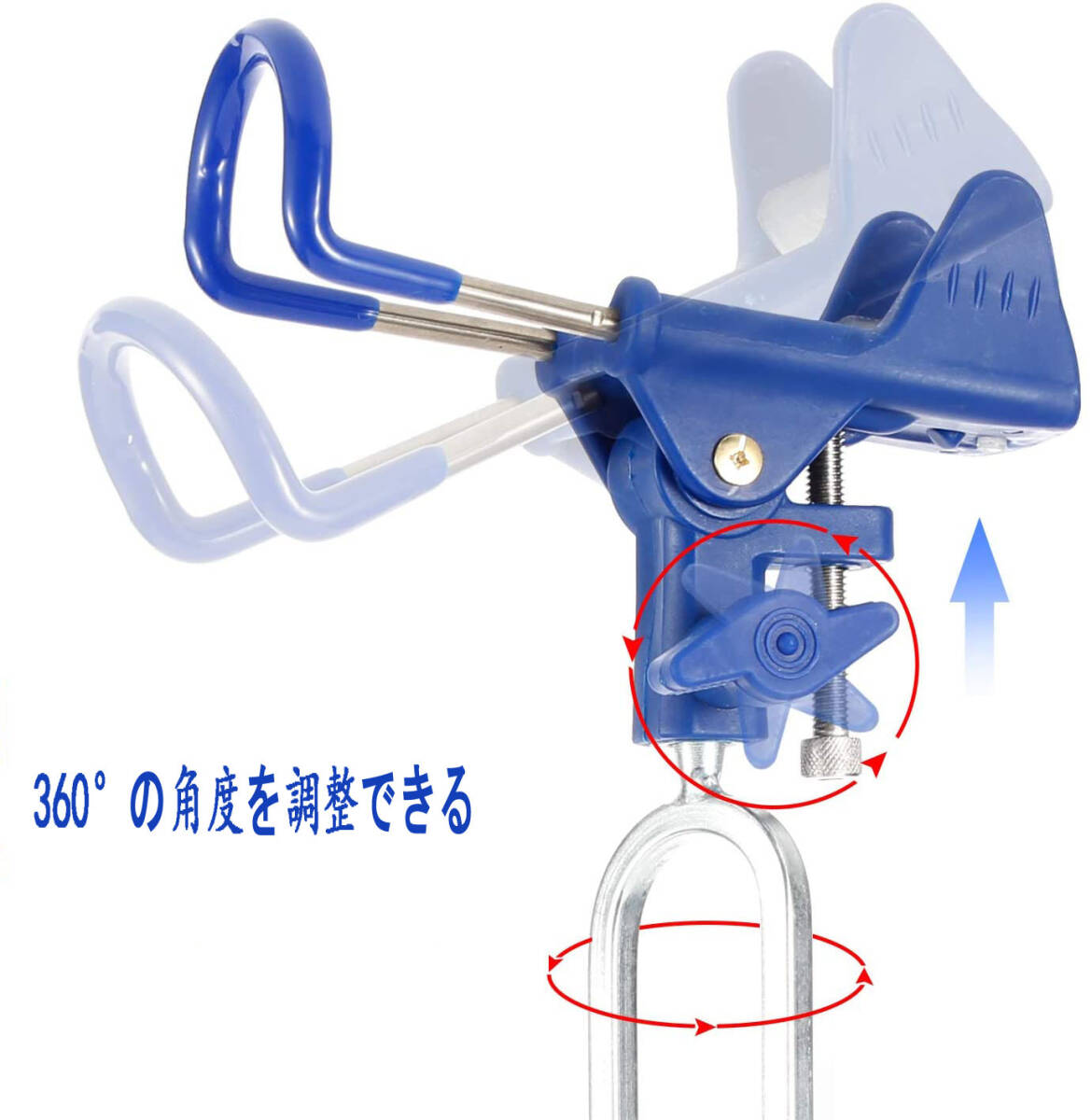 【安定感抜群】ロッドスタンドは角度が上下それぞれ無段階調整可能、ロッドホルダー 横方向に360°、縦方向に360°、方向を変更します。そしてロッドスタンドは360°自由に調整可能。回転式のロック機構で移動中でも落下しないようガッチリとロック。ロッドスタンドの固定部分が強く竿ごと海へ落下しません。様々に釣場に適し、お好きな 位置に角度が自由自在に調整でき、釣り中のロッドの調整は便利になります。