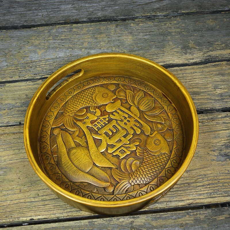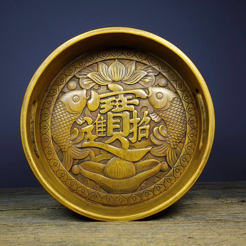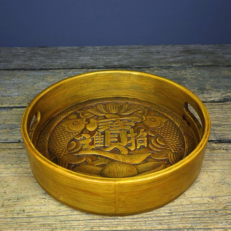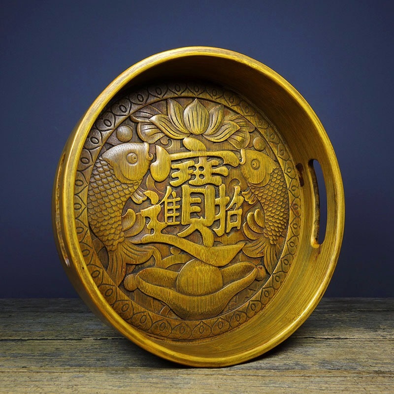 | 【蔵友館蔵品・竹黄細密彫・招財進寶紋・茶盤】・希少珍品・置物・賞物・中国時代美術 |