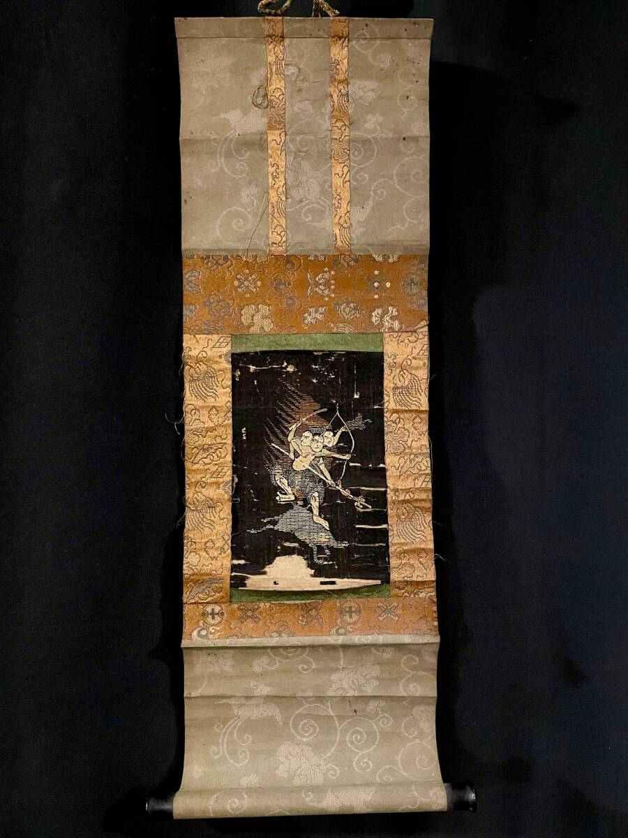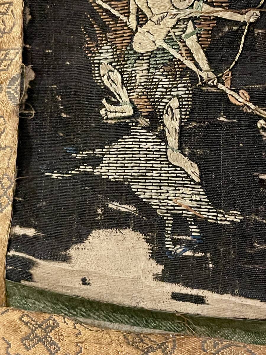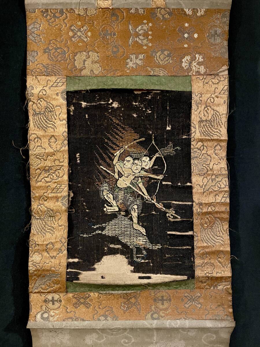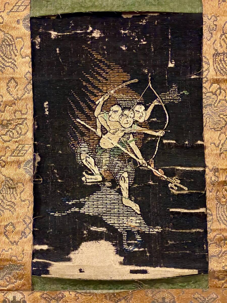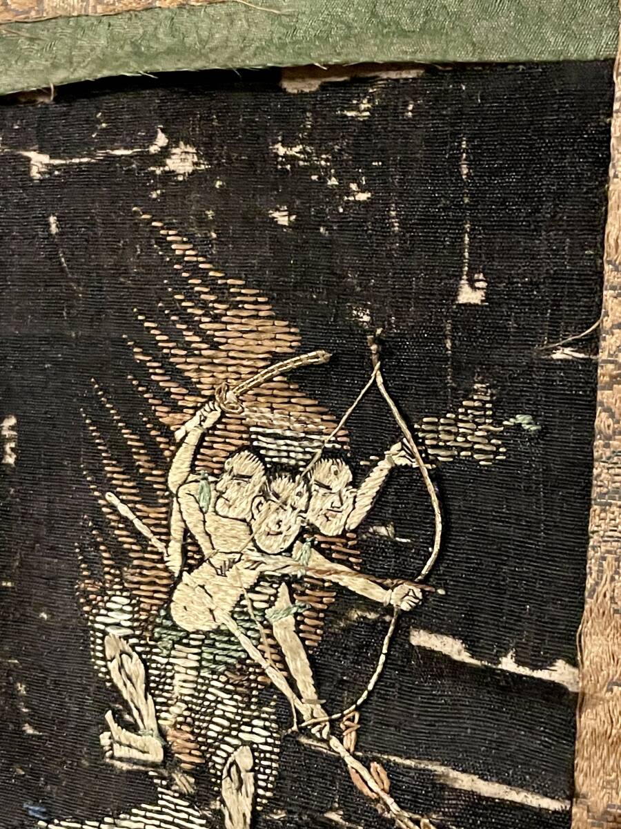 【仏教美術】摩利支尊天像 時代刺繍 掛軸■江戸時代 戦勝や護身の神として武士に篤く信仰される 運勢向上 厄除け 骨董 古美術■a736