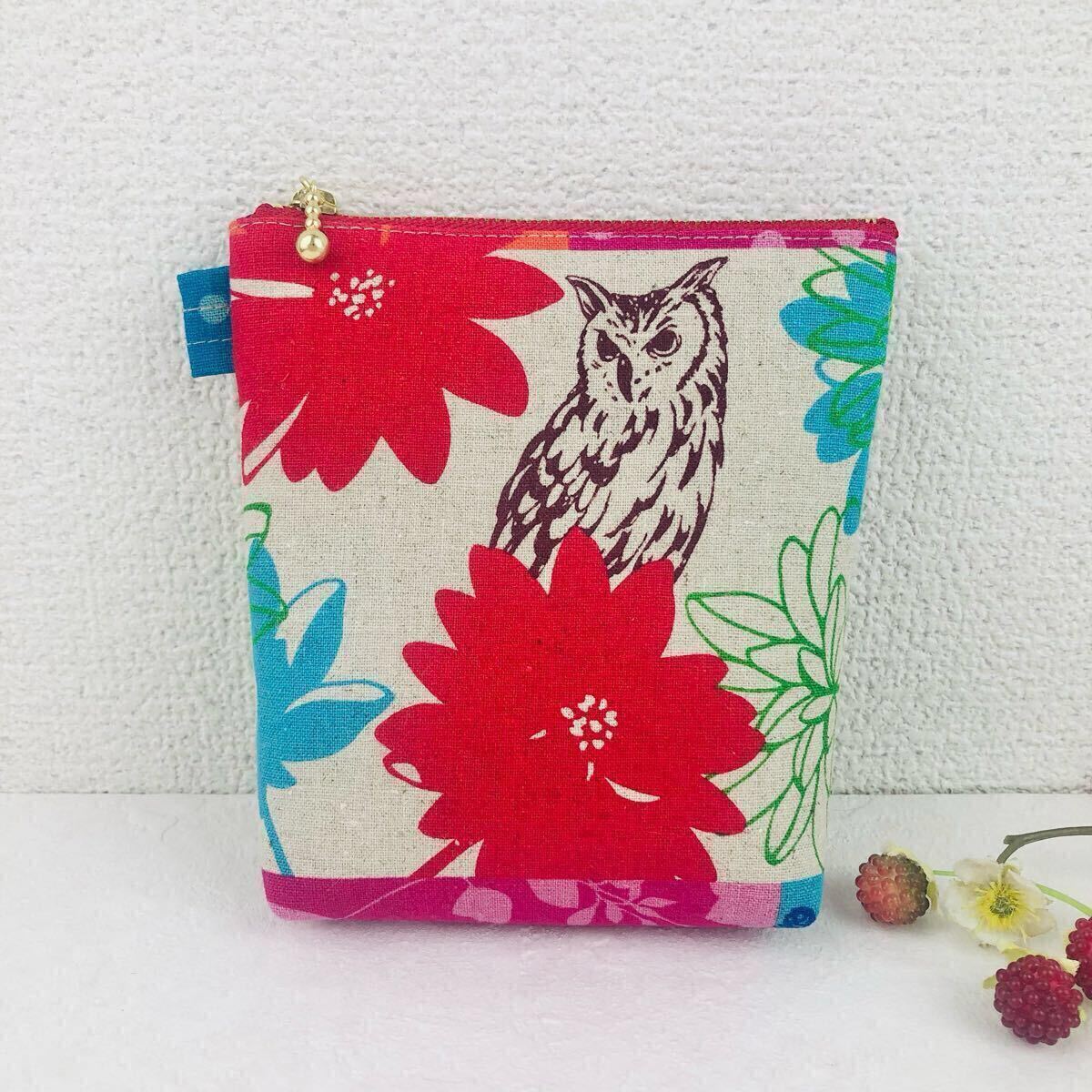 エチノ ふくろう ファスナーポーチ タバコポーチ アイコスポーチ ハンドメイド echino コスメポーチ サニタリーポーチ に 小鳥