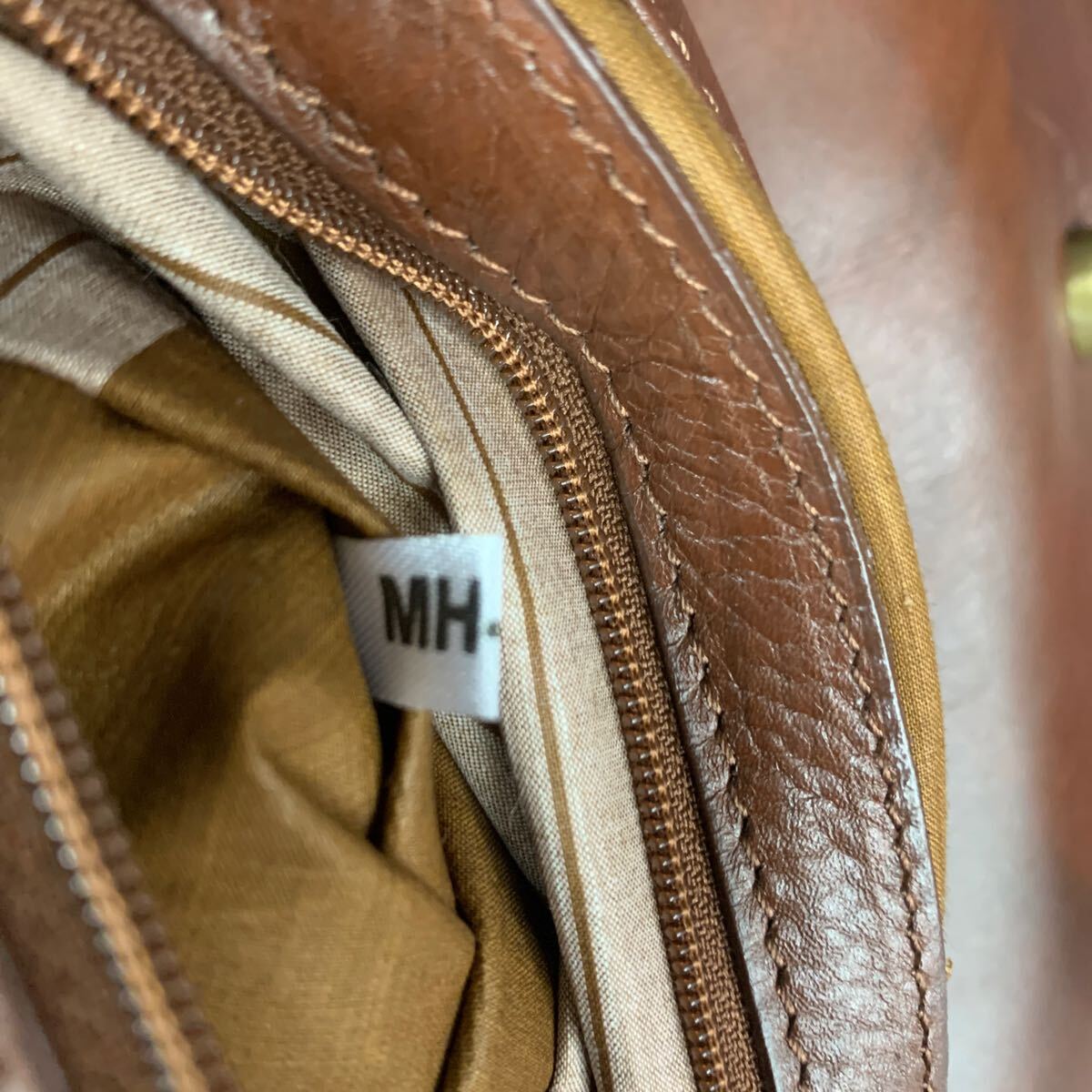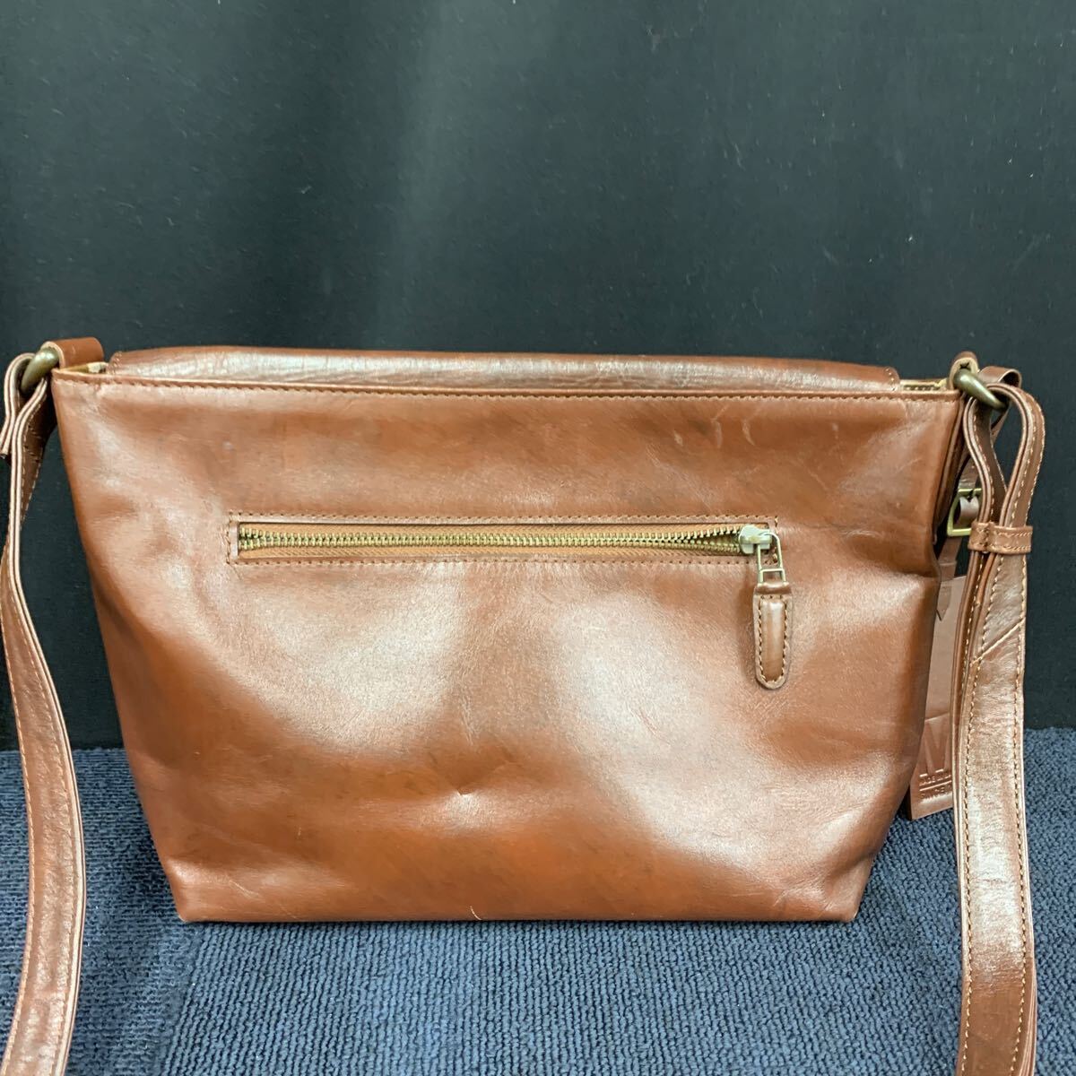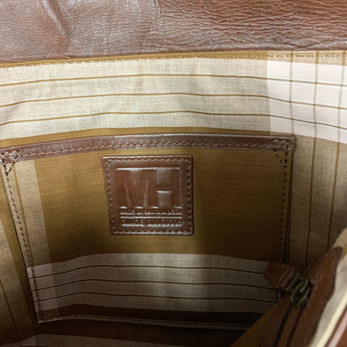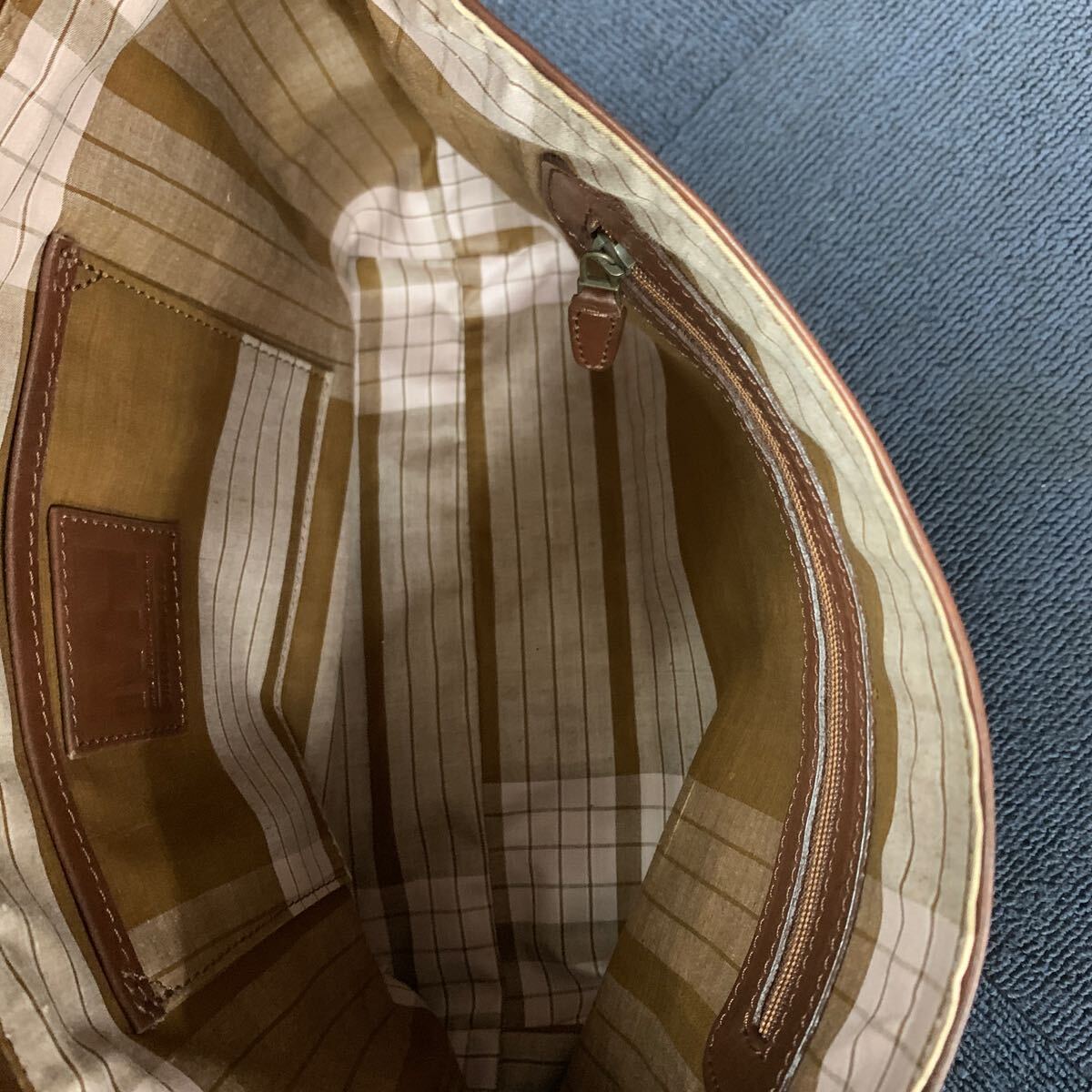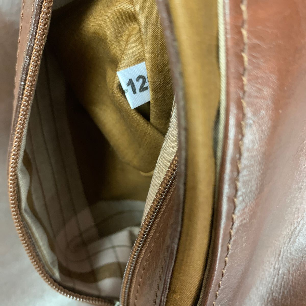 チェックの裏地付きで、背中側にファスナーポケット、内側にファスナーポケット、ポケットが2つあります。