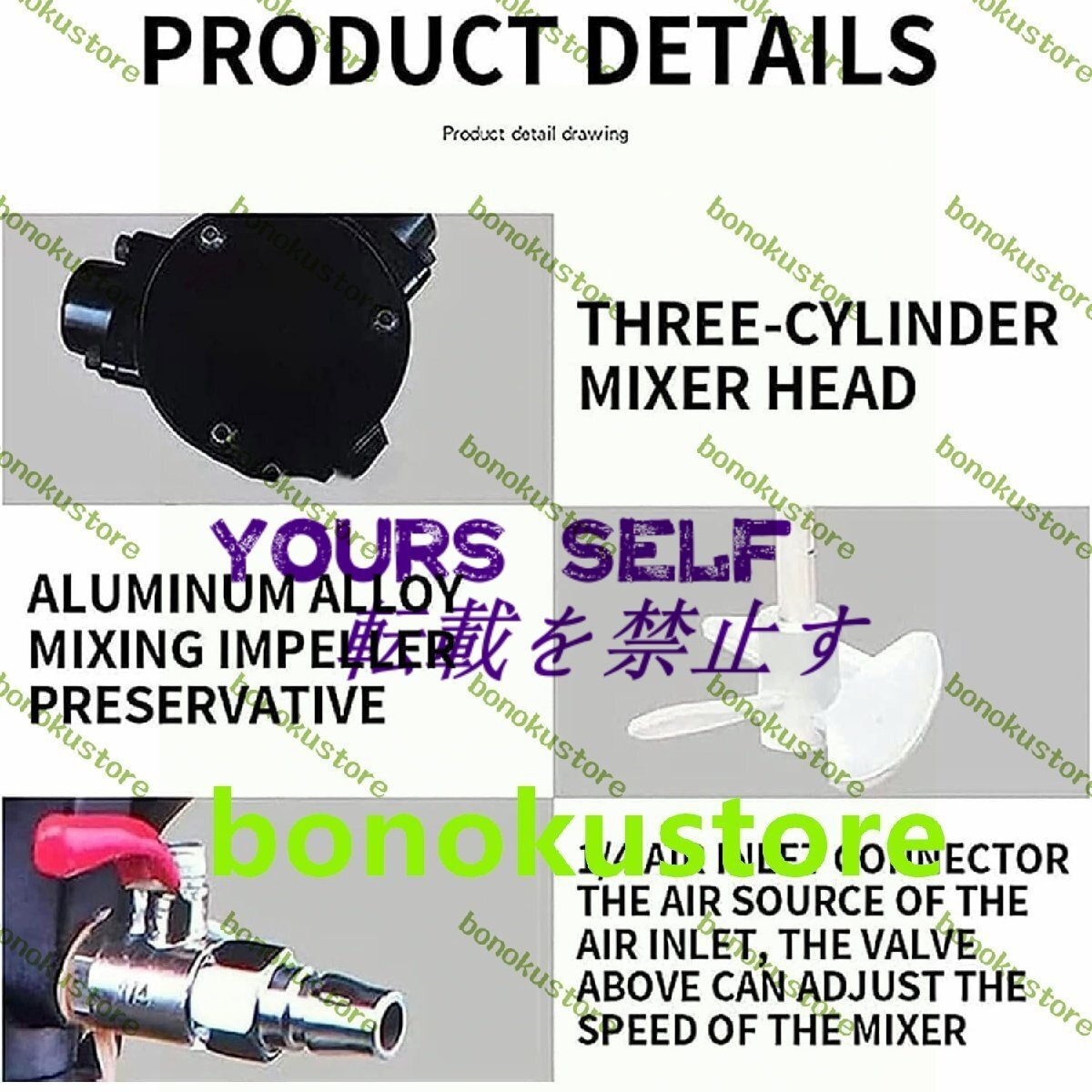 名前: 空気圧ミキサー モデル: 5ガロン 混合容量:20L 空気圧: 6-8mpa 速度: 1500-3000rpm シャフトサイズ: 1.2x52cm 重量: 12kg