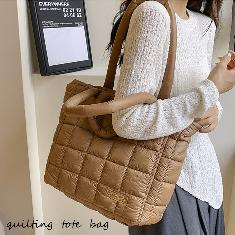 軽くてソフトなキルティングトートバッグショルダーストラップつきでハンドバッグ・トートバッグの2wayでお使いいただけます。なめらかな質感でやわらかな触り心地。シンプルできれいめコーデにもカジュアルコーデに合わせやすい。185gと軽量で大容量収納。メインの開閉口はファスナー仕様で中の物が落ちる心配がありませんサイズ:幅44cm、高さ31cm、マチ13cm/ハンドル(短)高さ14cm/ハンドル(高)高さ30cm