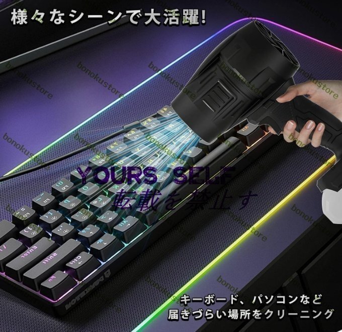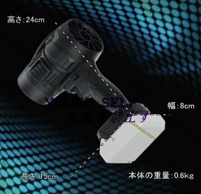 この商品について【革新的高風速デザイン】高速力モーターを搭載し、力強いジェットファンを提供します。最大風速60m/sを誇り、抜群の空気循環能力を持ち、効率を兼ね備えた空気フローを確立。組み込まれた丈夫なブラシレスモーターは、最大120000rpmの高速回転を実現し、安定