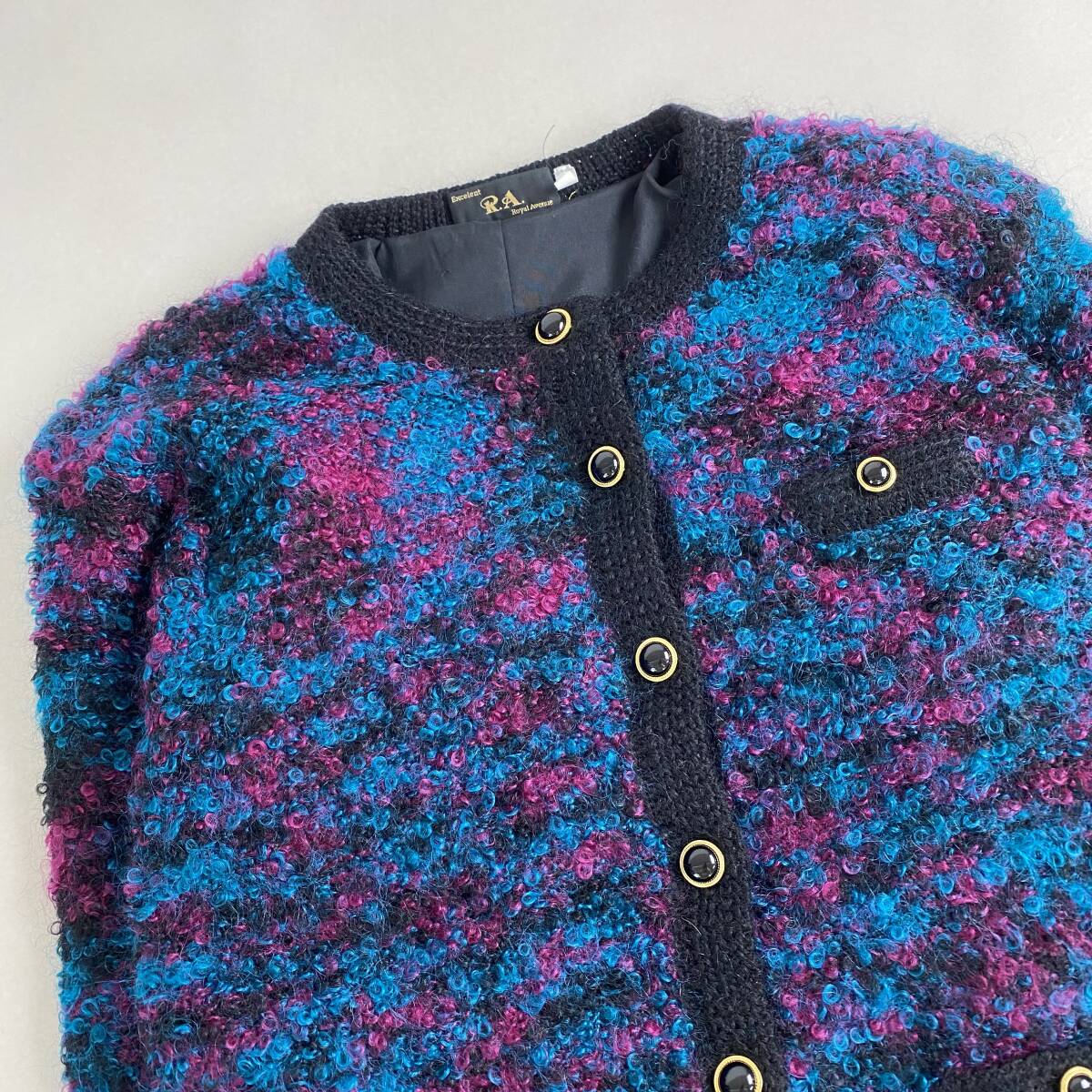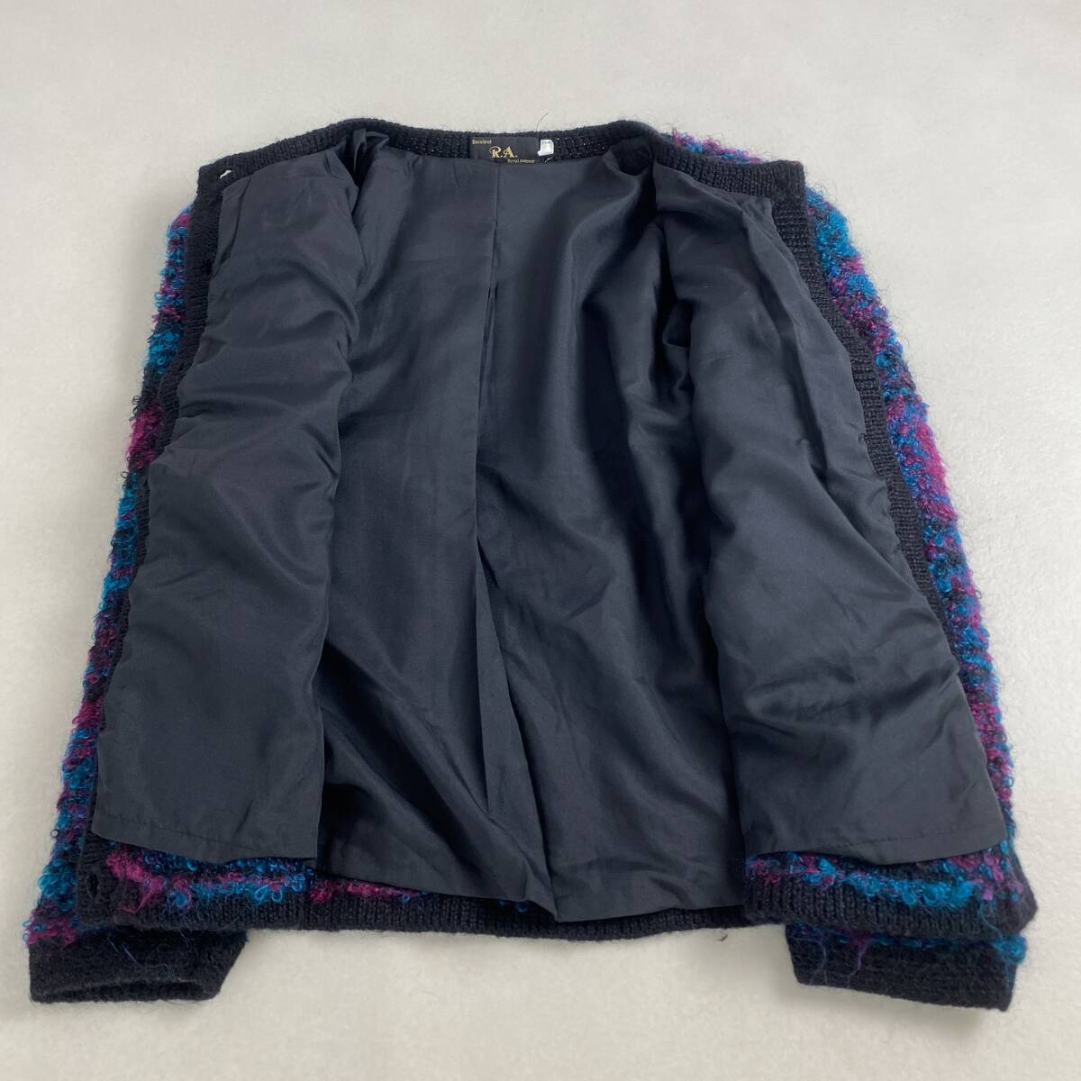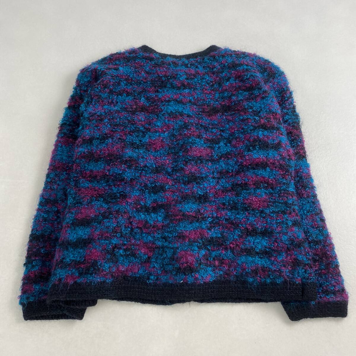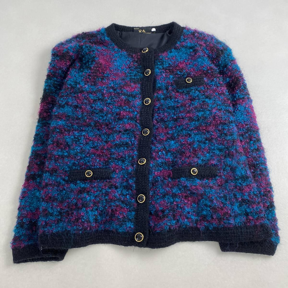 ヴィンテージ ノーカラージャケット カーディガン 金ボタン 毛足長い ふわふわ レトロ L