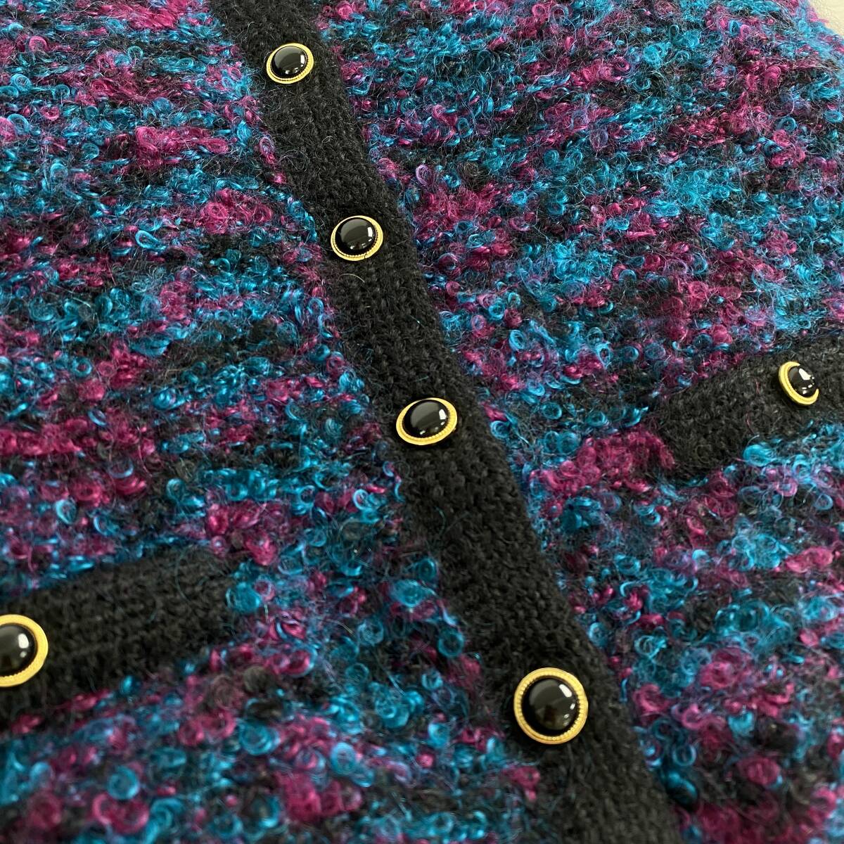 【ポイント】カーディガン 金ボタン 毛足長い ふわふわ レトロ L