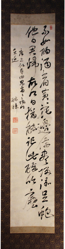 【書名】掛軸 山内容堂 二行書【著者】【解説】紙本 箱書有 元表装 135×30cm 土佐藩十五代藩主。幕末の四賢候の一人として評価される一方で当時の志士達からは幕末の時流に上手く乗ろうとした態度を「酔えば勤皇、覚めれば佐幕」とやゆされた。大政奉還を建白したことで有名。【刊行年】【数量】