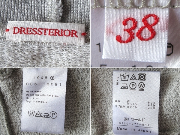 DRESSTERIOR ドレステリア 2020SS リネン裏毛ラグランスリーブプルオーバー 半袖スウェット 38 杢グレー 日本製
