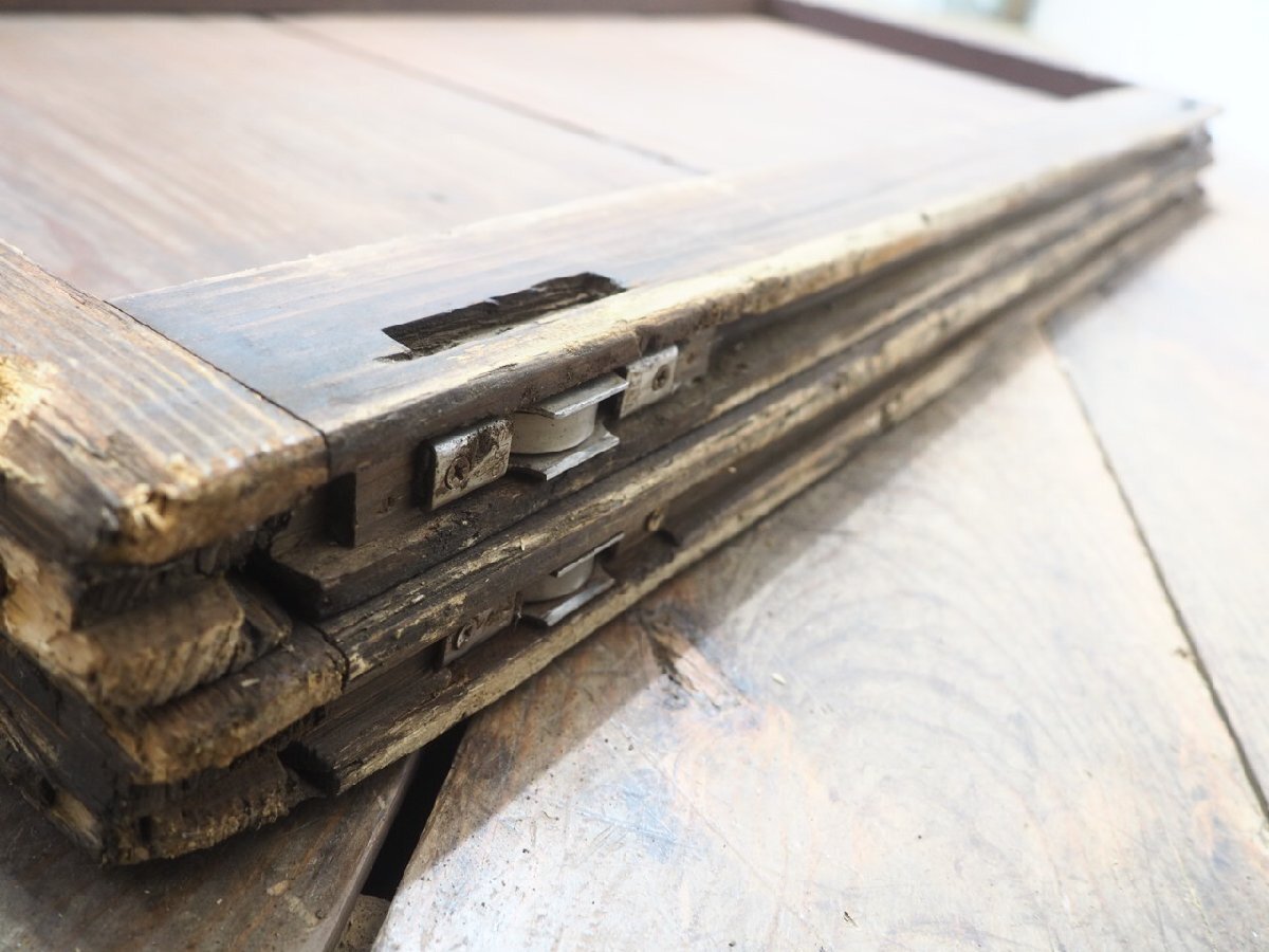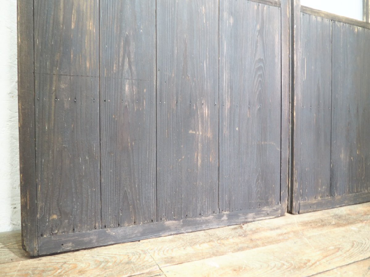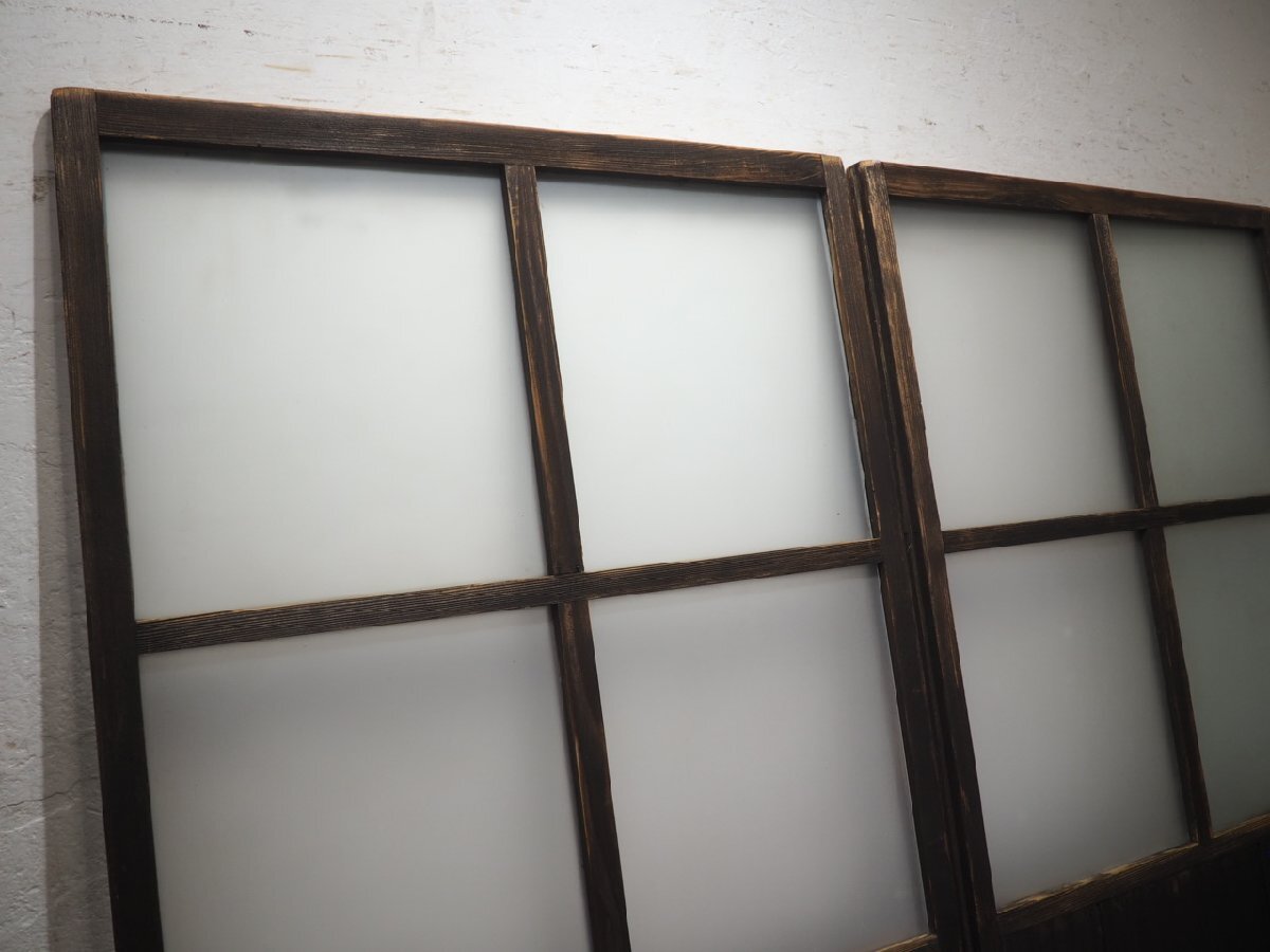 商品情報 | ■商品詳細■ アンティークの古い木枠引き戸、2枚セットです。 長年使い込まれた味わいのある品です。 下部のみ引き戸加工があります。 ガラスは、曇りガラスを使用しています。 一般のご家庭はもちろん、レトロな店舗什器にもお勧めです。 経年の傷や欠け、染みや落としきれない汚れ、木枠に欠けや木肌に痩せ、 ヒビや割れ、板に傷み等がありますが、使用には問題ありません。 ガラスにヒビや割れはありません。 古い物とご理解いただければ幸いです。 ◆別カテゴリーにて、同じデザインの品(V0776~V0781)を出品していますので まとめてご希望の場合は、ストア内検索で上記の管理番号を検索して頂ければと思います。 売買済みの場合はご了承下さい。 ご不明な点などありましたら、質問欄にてお願いします。 ■サイズ■ 全体(最大値) (H 179,5cm×W 91,5cm×D 3,5cm)×2枚 竪框 3,5cm 多少の誤差はご了承下さい。 ドライバー1人での配達になりますので、場合(通路が狭い等)によっては 荷運びのお手伝いをお願いすることがあります。 商品は玄関先までの配達になります。 |
