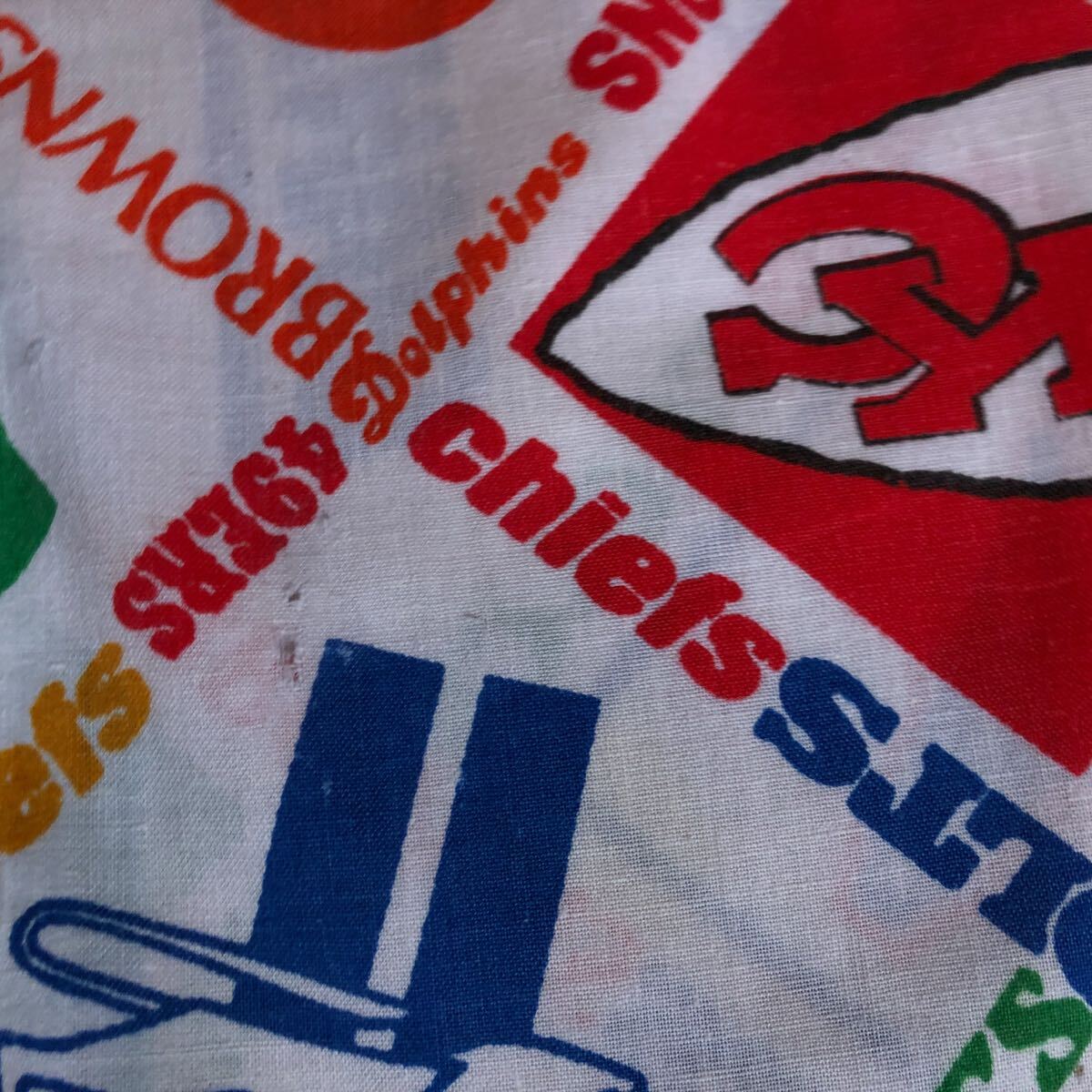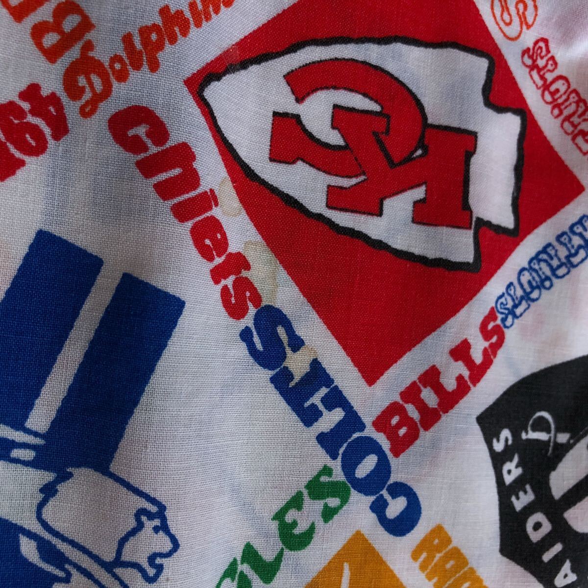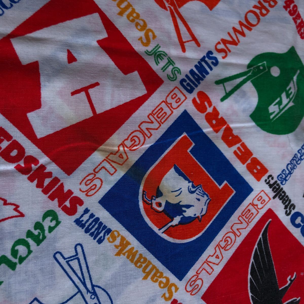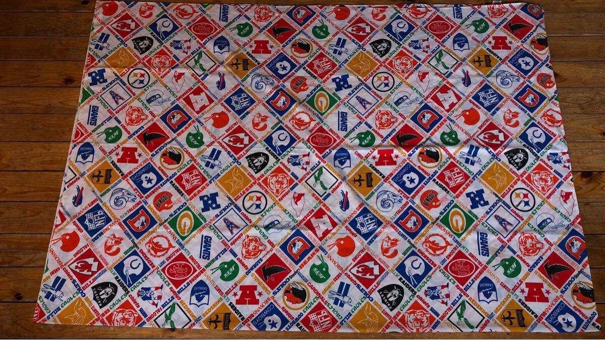 アメリカで購入したセカンドハンド(古着)の、NFLのベッドシーツです。