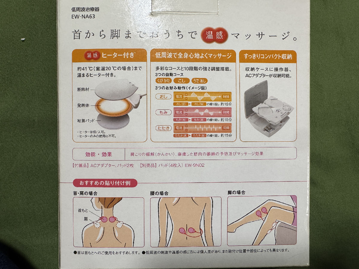 | パナソニック Panasonic 低周波治療器 おうちリフレ 全身用 温感機能搭載 ホワイト EW-NA63 | |