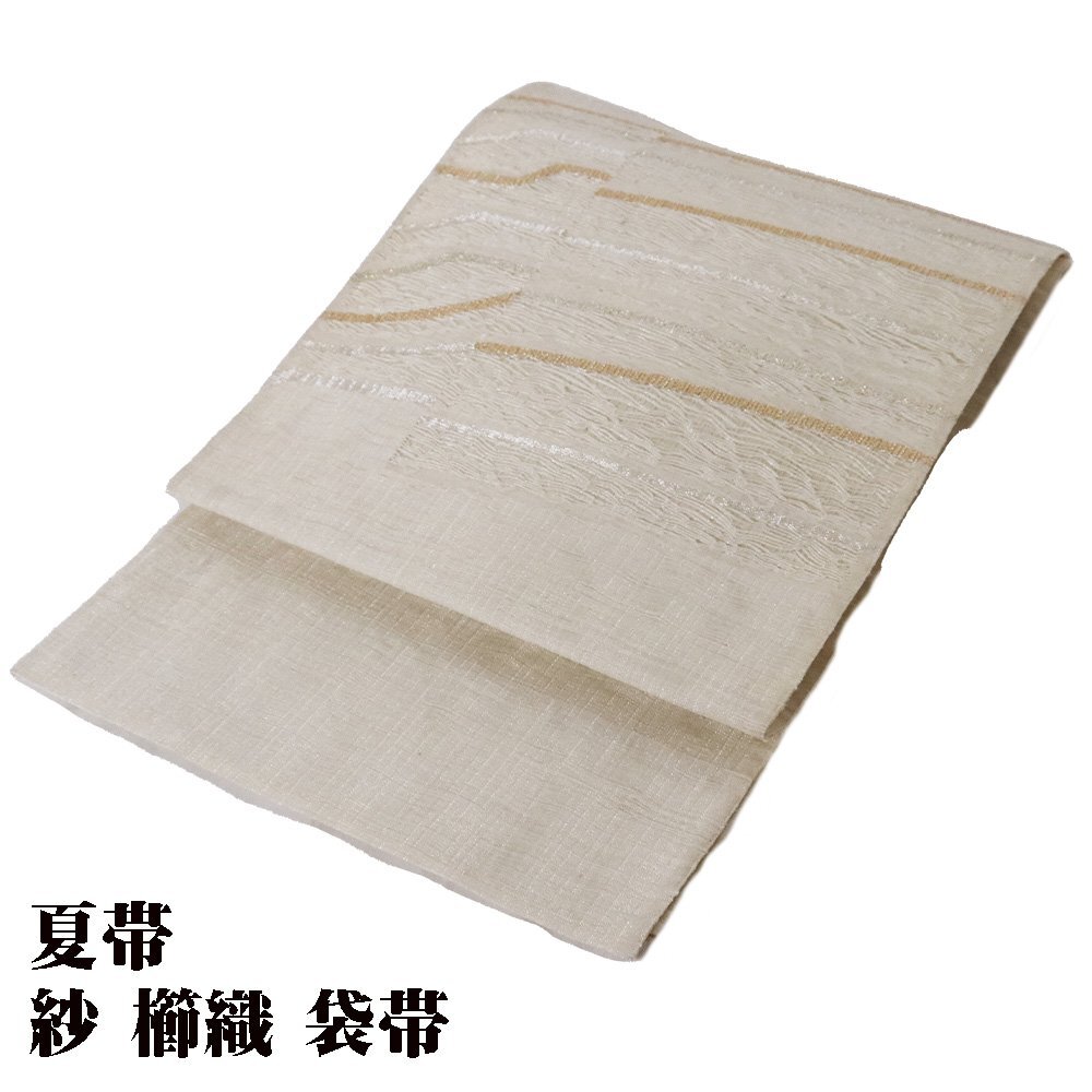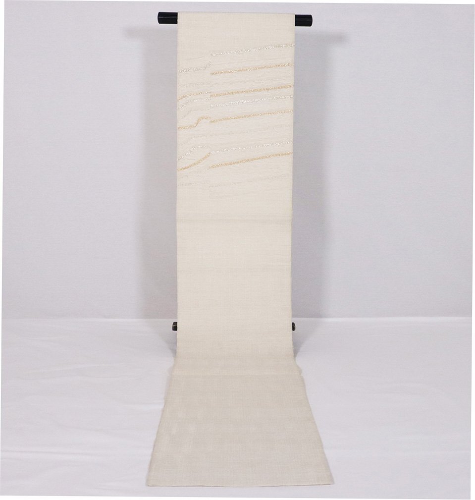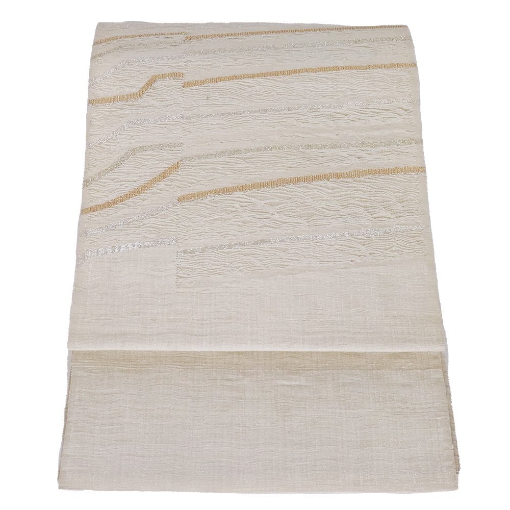 | 紗 櫛織 袋帯 クリーム暈し地 金・銀・縞 未使用品 仕立て上がり | |