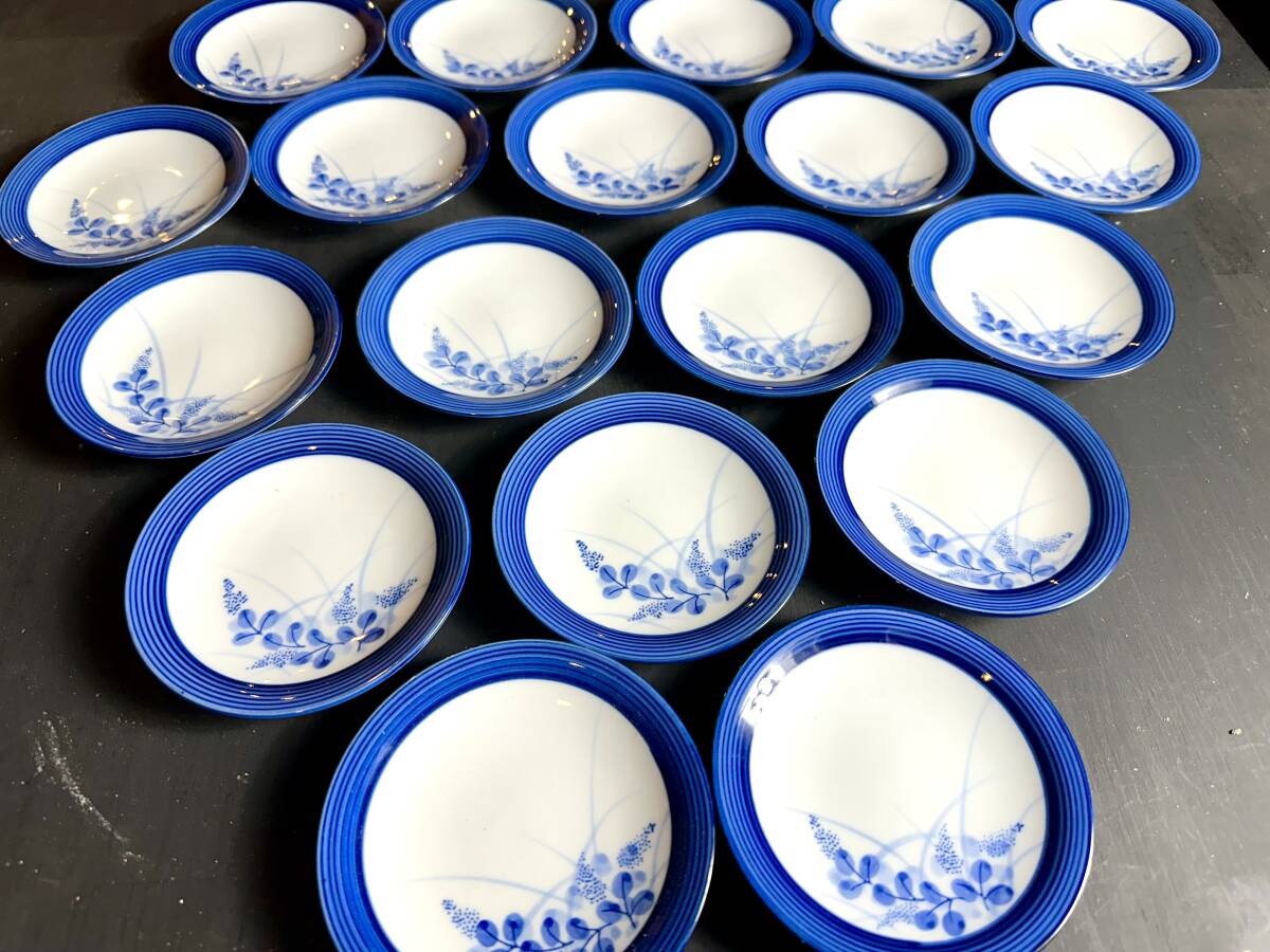 ★兵庫旧家蔵出し 希少 極美品 有田焼 萩窯 手塩皿 膾皿 小皿 豆皿 大量 まとめて 19客セット 昭和レトロ /染付 印判 ベロ藍 藍色★のご紹介です♪ お探しだった方、この機会に是非どうぞ! 当オークションサイトでも滅多に出ない希少品の大量一括放出です♪ 大きな割れや欠け、ヒビなどはなく極美品の部類に入ると思います♪ ●サイズ:直径約12㎝×高さ約2㎝ ×19客 ※当方素人のため、年代など詳細は分かりかねます。 ※経年による微細なキズやくすみ等はあるものとご理解ください。 ※蔵出しのままでの出品ですので汚れ等ご了承ください。 付属品は画像に写っているものがすべてです。 画像をよくご覧の上、是非この機会にご検討下さいませ…。 尚、新品のようなクオリティをお求めの方は入札をご遠慮下さい。 あくまでも経年古物・中古品としてご理解頂ける方に…♪ ※品質には自信を持っておりますが、あくまでも中古品です。 全ての状態を完璧に説明することは難しいので、古いものに慣れておられない方、傷みなどの無い完璧な商品をお求めの方も入札をご遠慮下さい。 画像をご確認の上、ご検討いただければ幸いです♪ ◎写真の画像は撮影の光度と御覧になっているお客様のパソコンのディスプレイ画面の環境の違いにより、現物と若干の色合いの相違が生じる事がありますのでご了承下さい。 不明な点がお有りの際は質問欄よりお問い合わせ下さいね♪ 御入札お待ち致しております♪ |