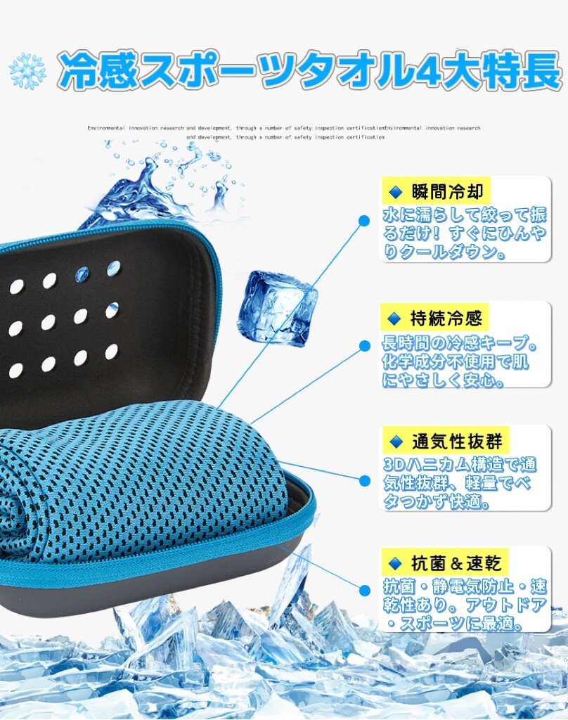 水に濡らして軽く絞って振るだけで、瞬時にひんやり!冷感が持続し、運動後や炎天下でも快適。