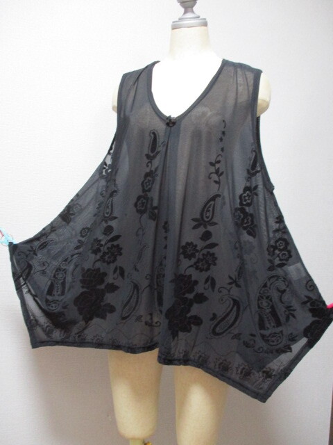 Oshalady 黒フロッキィ柄★ゆったりめ~カットソー