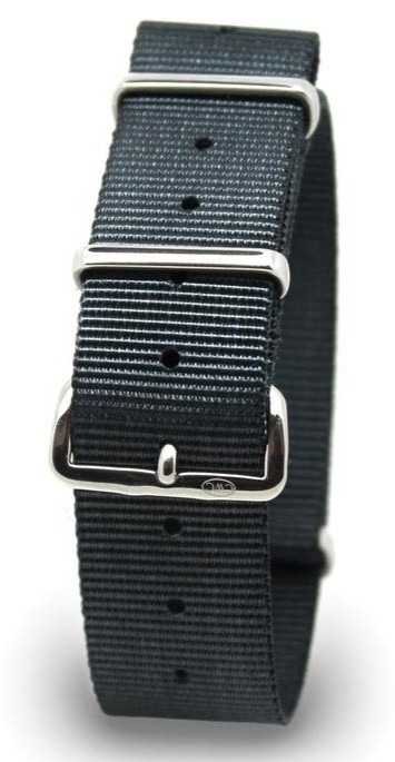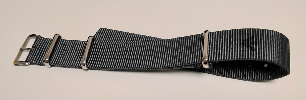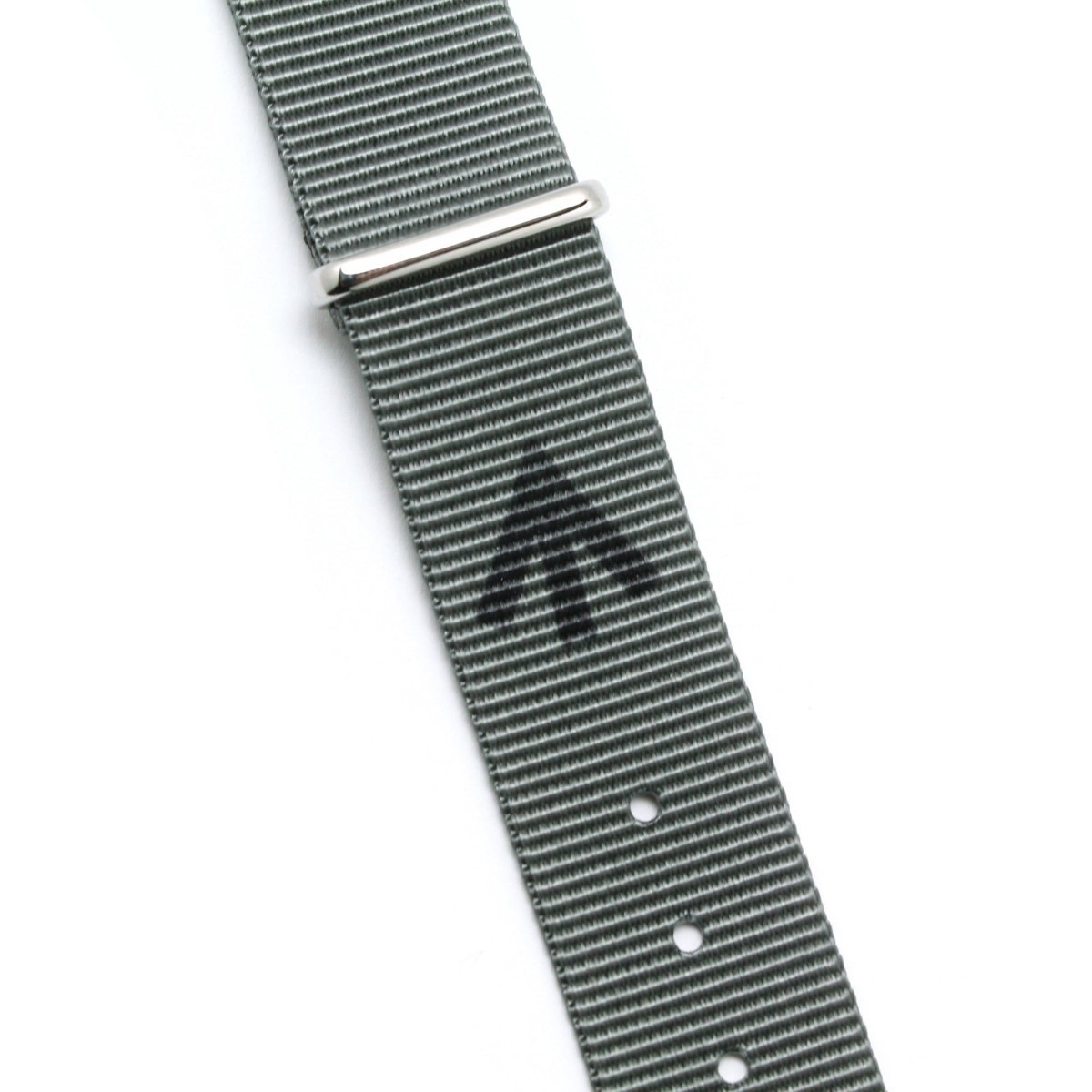 NATOグレーという色で、ラグ幅「18mm」の時計に対応します。