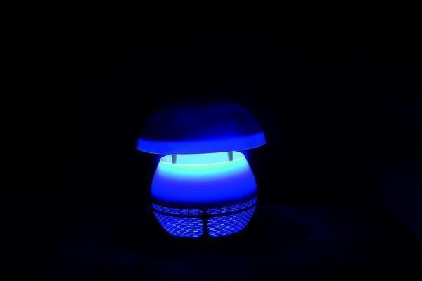 ブルーライトで誘いこみ、吸引気流で吸い取る、薬を使わない殺虫灯です。