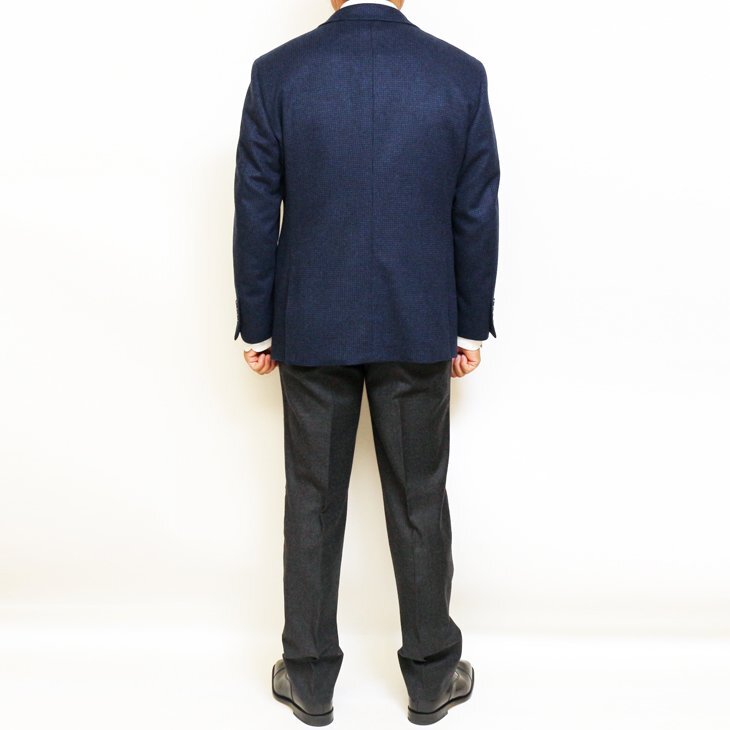 (上着) ・AMFコバステッチ:胸ポケット、ラペル、フロントポケット、サイドベンツ ・本台場・汗止め・袖口4つボタン・袖口裏額縁仕上げ・ピンポンステッチ ・Dカン補強はジャケット表面は無し、内側ポケット両サイドのみ (内装) ・フロント、袖口など各部接着芯にて補強しラペル毛芯にて全体を 軽量化した上着仕様です。薄手肩パット+タレ綿入り (生産)中国製 *仕上げプレスは国内で施してあります。 |