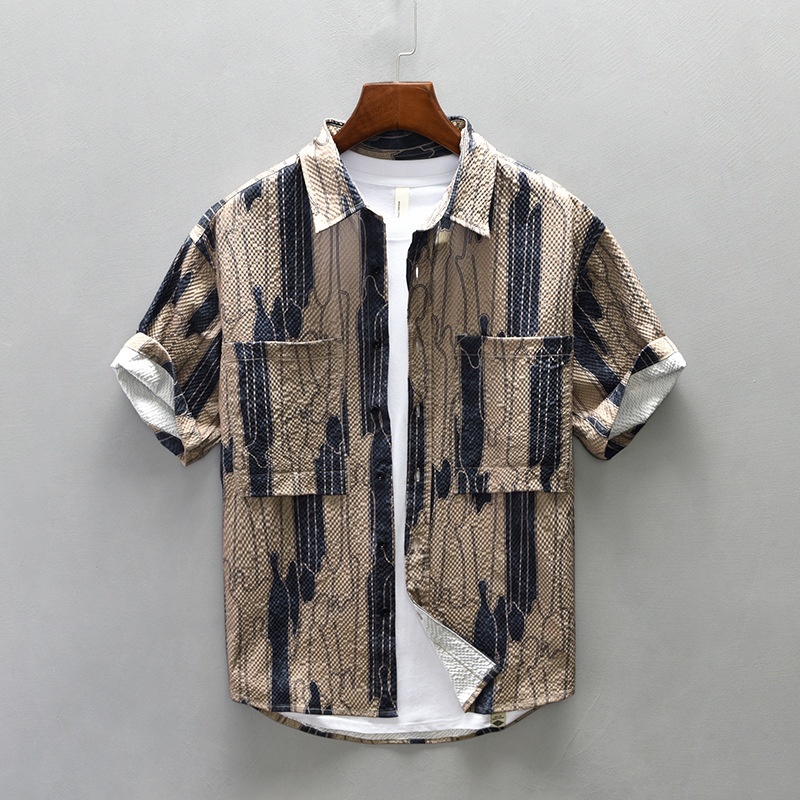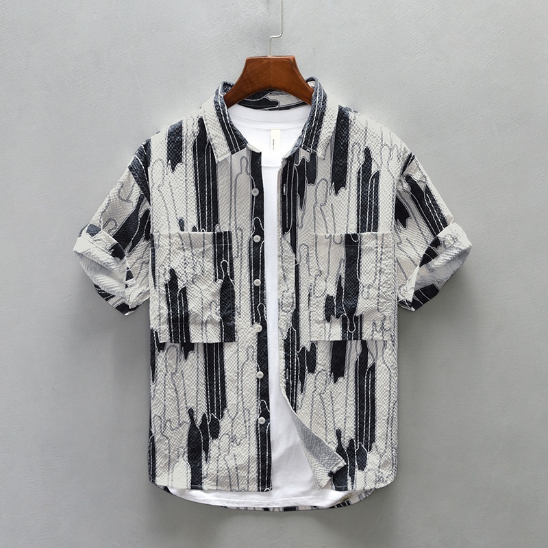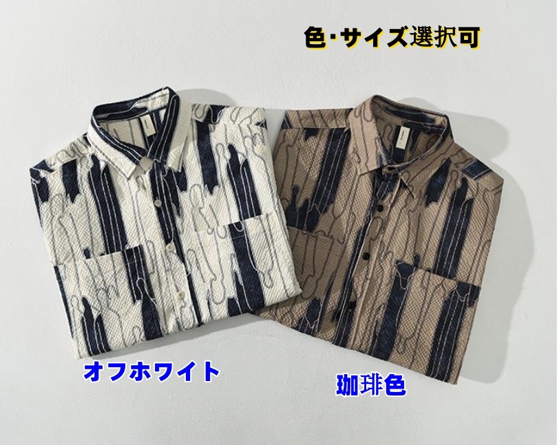 半袖シャツ メンズファッション・新品 サマーシャツ アロハシャツ シャツ 開襟シャツ トレンド トップス【Z237】オフホワイト 4XL