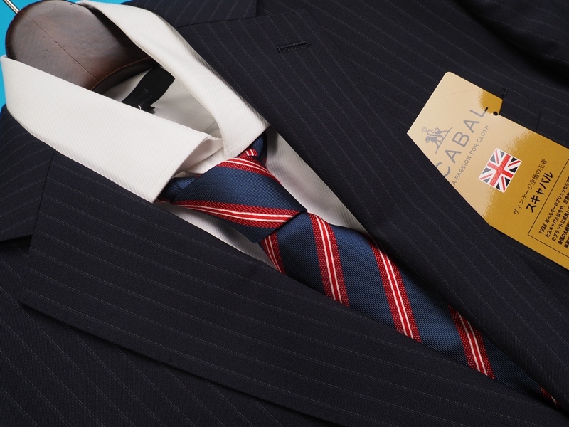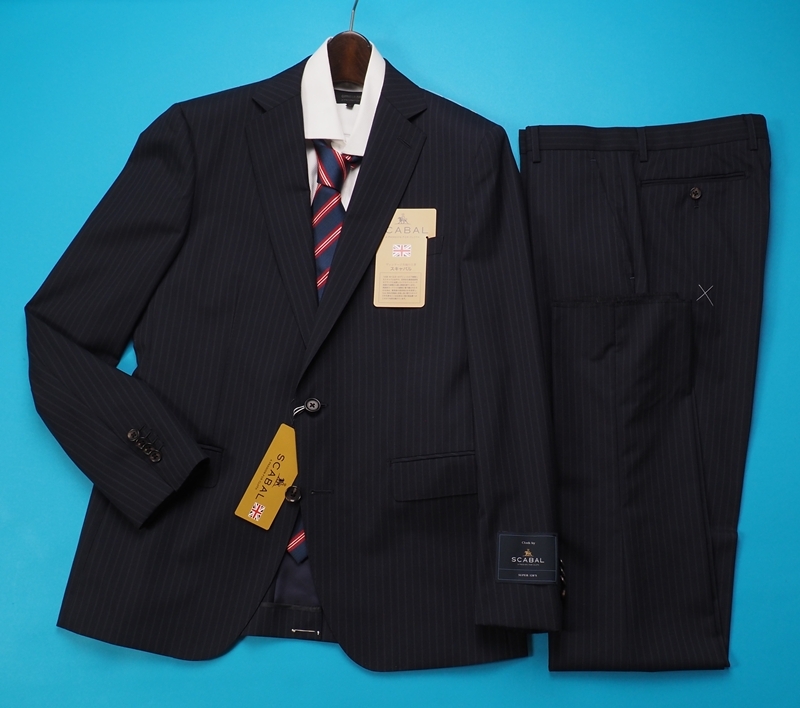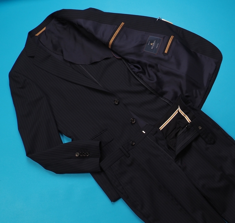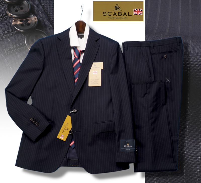 新品20.6万円 大手百貨店扱い 春夏 日本製『Scabal スキャバル 英国製生地』Super120Sウール ストライプ スーツAB4濃紺(B)1704071