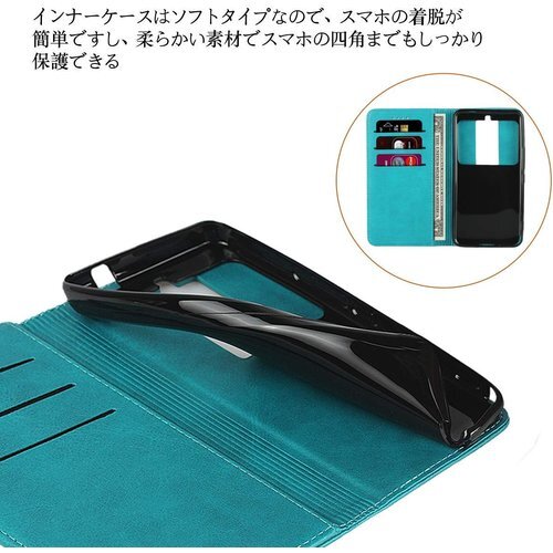 【機能性②】:内蔵マグネット機能搭載の手帳型ケースなので、留め具の邪魔無し、滑り防止の素材を採用され、とてもシンプルな感じで、しかも持ち易いて、使い勝手がよいのです。