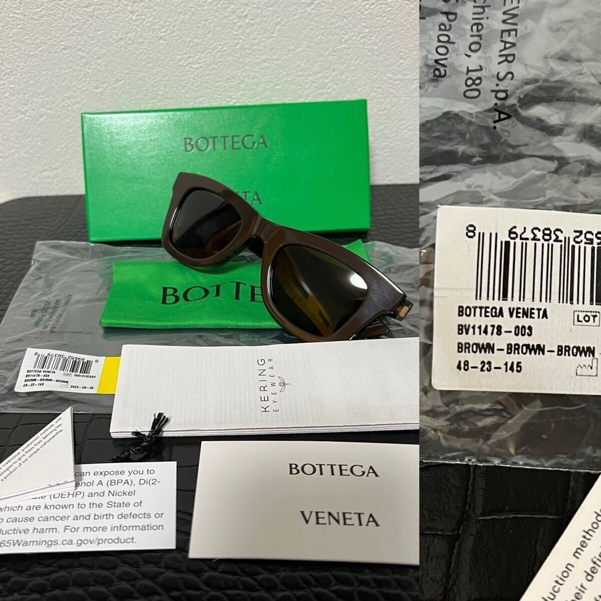 ボッテガヴェネタ bottegaveneta 未使用 サングラス BV1147 メガネ ブラウンフレーム ブラウンレンズ ウェリントン ユニセックスデザイン