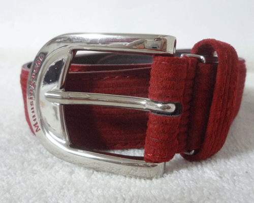 ☆美品☆ Munsingwear マンシングウェア スエード フェイクレザー レッド ダークブラウン ベルト | ||