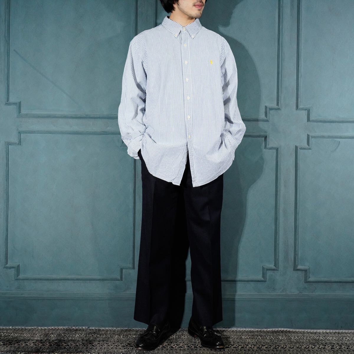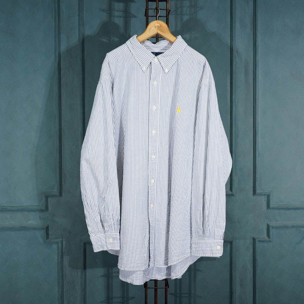 USA VINTAGE Polo by Ralph Lauren HORSE EMBROIDERY STRIPE PATTERNED SEERSUCKER DESIGN SHIRT/アメリカ古着ポロバイラルフローレンホース刺繍ストライプ柄シアサッカーデザインシャツ