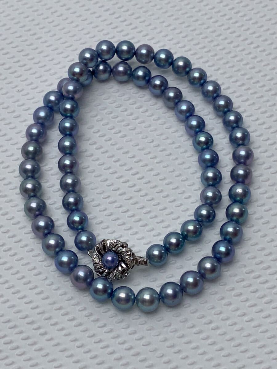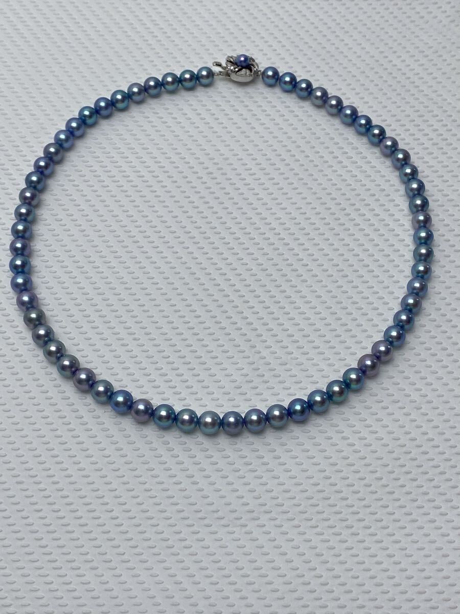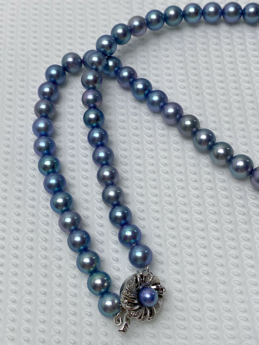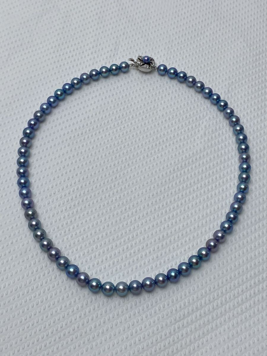 【ブルーグレー】アコヤ真珠ネックレス 本真珠 留め具SILVER パール