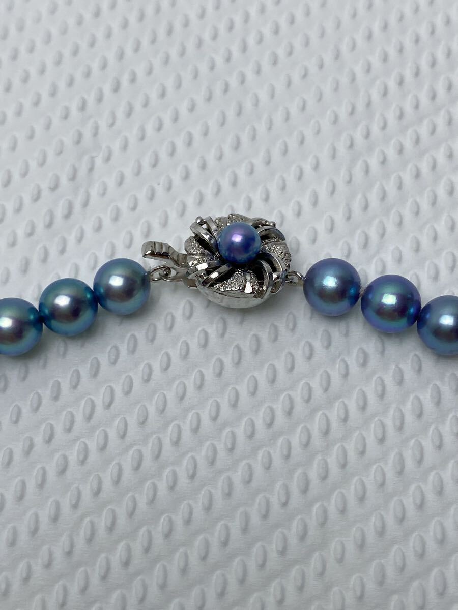 G037 【ブルーグレー】アコヤ真珠 6.3~6.7mm 42cm ネックレス 本真珠 留め具SILVER パール