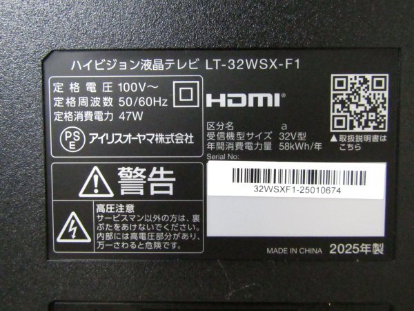 ■展示品■IRIS OHYAMA/アイリスオーヤマ■LUCA/ルカ■ハイビジョン液晶テレビ■32V型■ダブルチューナー■2025年製/LT-32WSX-F1/kdnn4050m